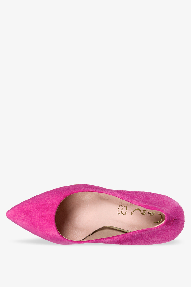 Jakość i precyzja wykonania to cechy, które wyróżniają ten model spośród innych. Fuksjowe szpilki zostały uszyte w Polsce, co zapewnia kontrolę na każdym etapie produkcji i potwierdza dbałość o detale. Naturalna skóra zamszowa, z której wykonano cholewkę, nie tylko prezentuje się efektownie, ale jest też trwała i oddychająca. Szpiczasty nosek nadaje butom smukłości i optycznie wydłuża nogi, a miękka skórzana wkładka dopasowuje się do stopy, gwarantując wygodę, nawet podczas wielogodzinnego noszenia. Wsuwana konstrukcja sprawia, że zakładanie ich to czysta przyjemność – bez zbędnych zapięć, bezproblemowo i błyskawicznie. To produkt, który łączy w sobie rzemieślniczą perfekcję i nowoczesny design.