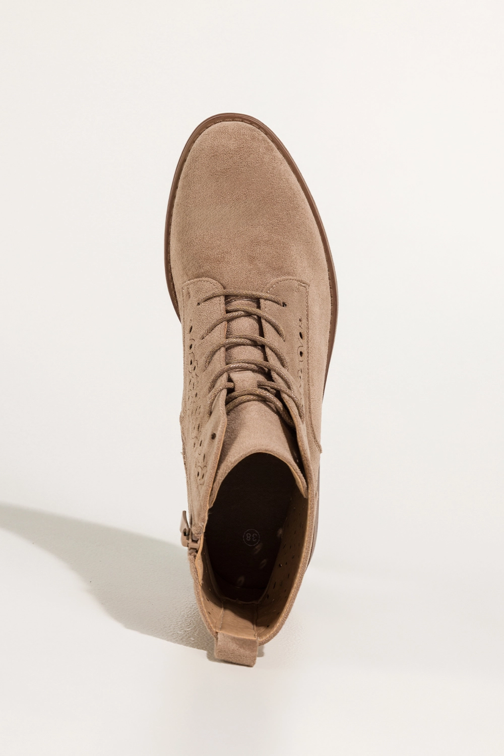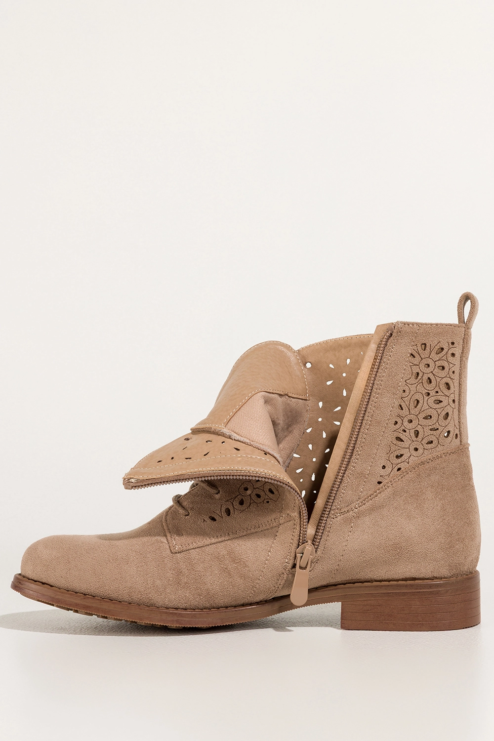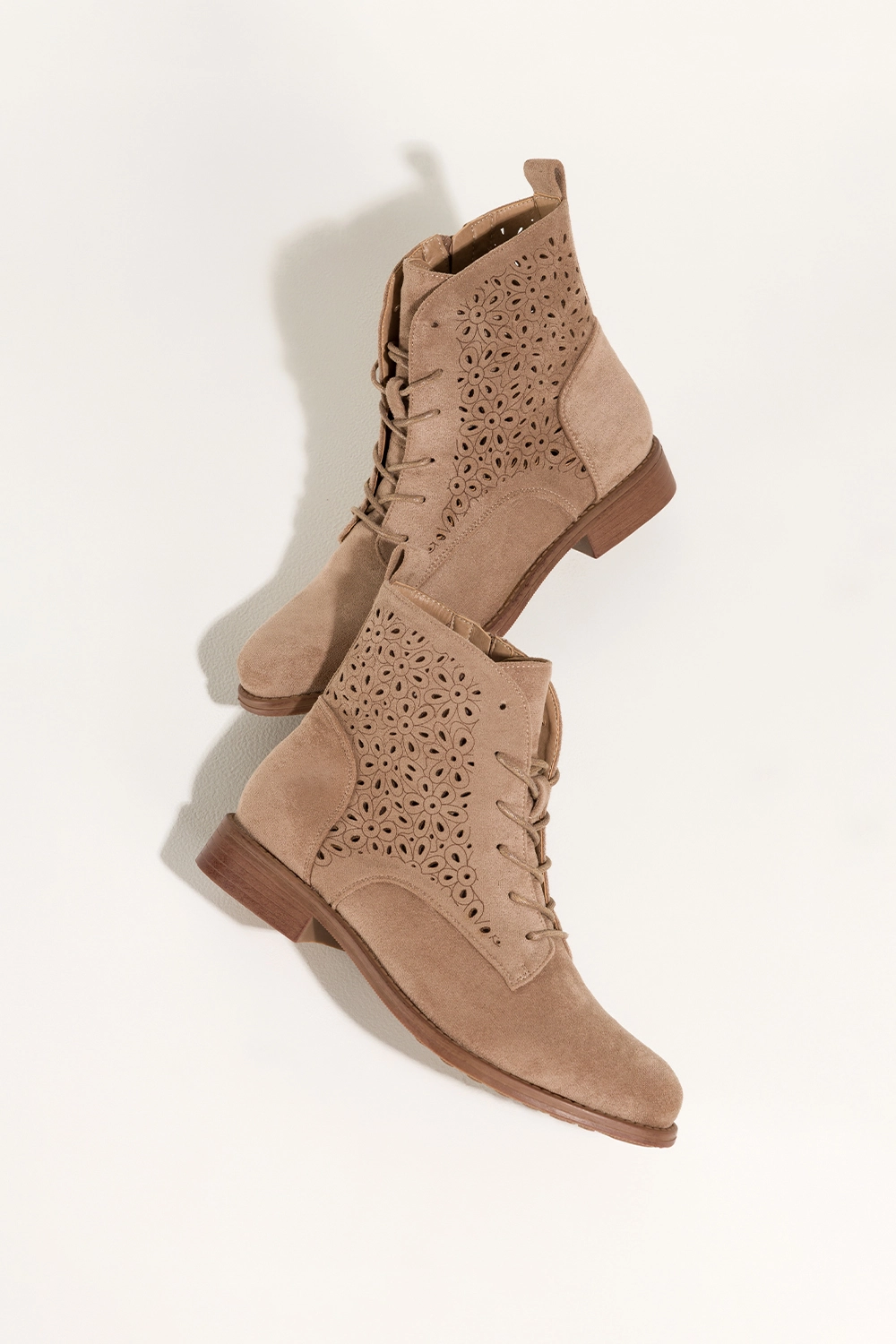Beżowe botki damskie ażurowe płaskie sznurowane Carla model S7680-7 to propozycja, która zachwyca zarówno subtelnością designu, jak i praktycznością użytkowania. Te niezwykle kobiece buty, wykonane z wysokogatunkowego zamszu ekologicznego, doskonale wpisują się w najnowsze trendy mody, jednocześnie gwarantując komfort i wygodę na co dzień. Dzięki ażurowej cholewce, botki nie tylko pięknie wyglądają na nodze, ale także zapewniają idealną cyrkulację powietrza, co czyni je znakomitym wyborem na wiosenne i letnie dni. Ich uniwersalny, beżowy kolor sprawia, że z łatwością dopasujesz je do każdej stylizacji – od miejskich zestawów z jeansami, po romantyczne sukienki w stylu boho.
