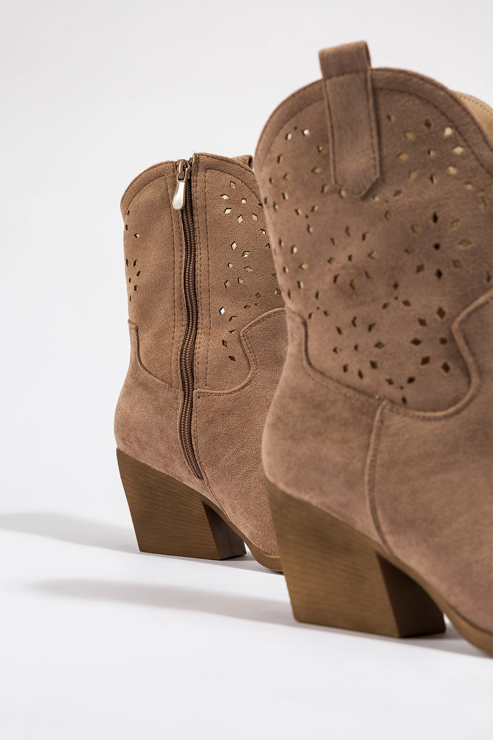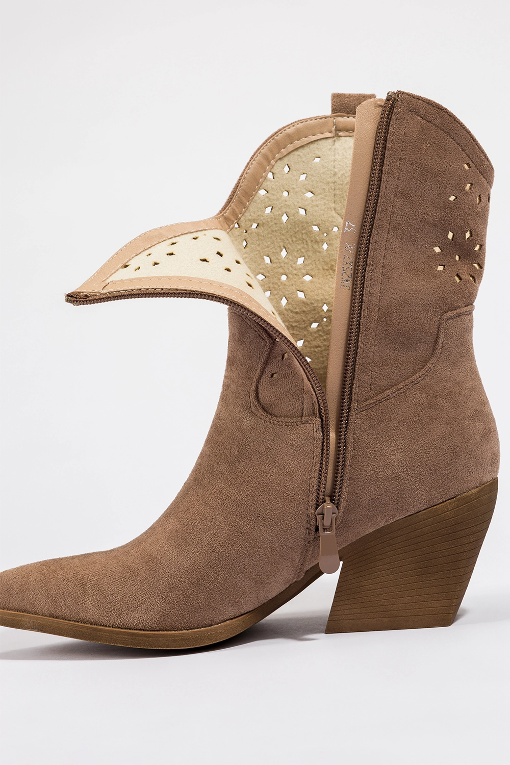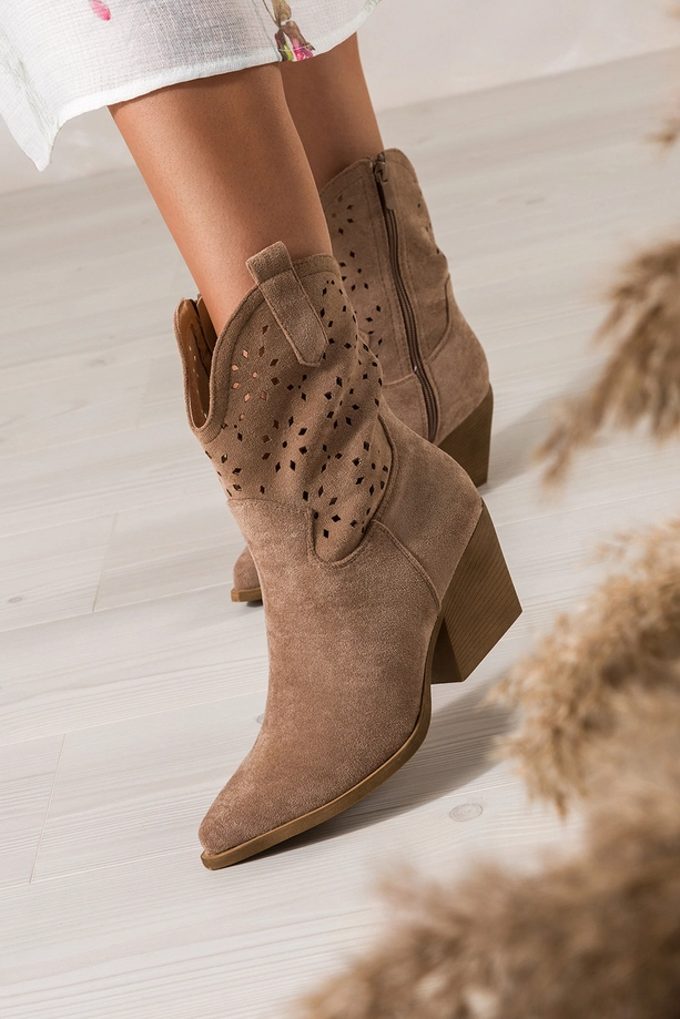 Beżowe botki damskie kowbojki ażurowe na szerokim ściętym klocku Casu JW25X7-K