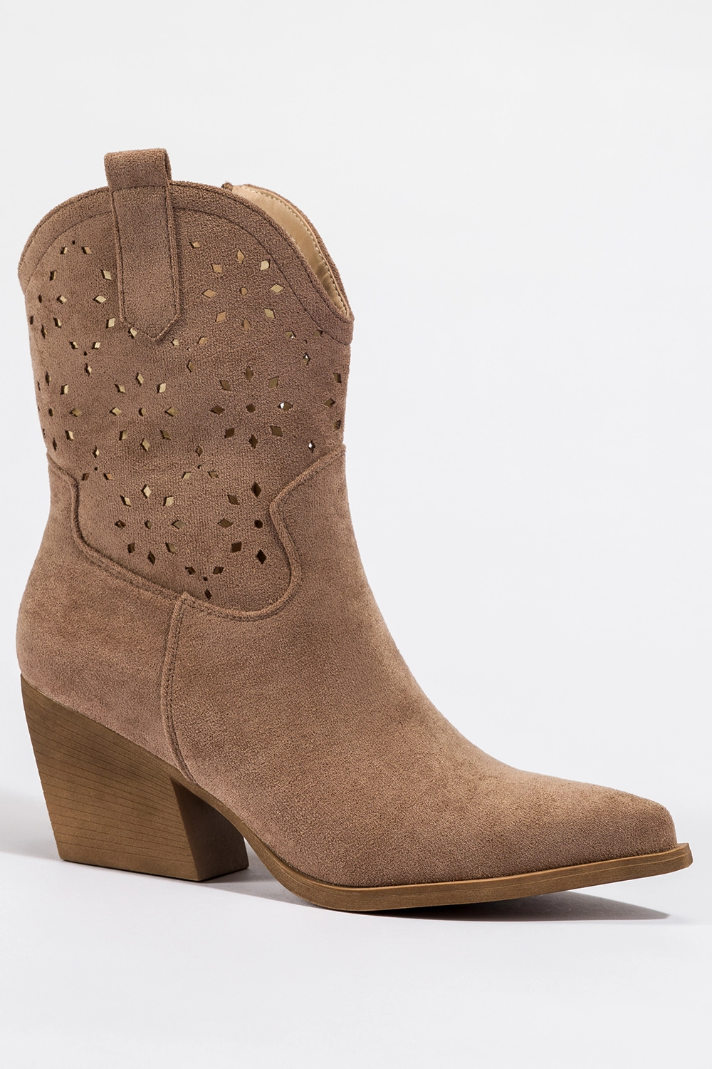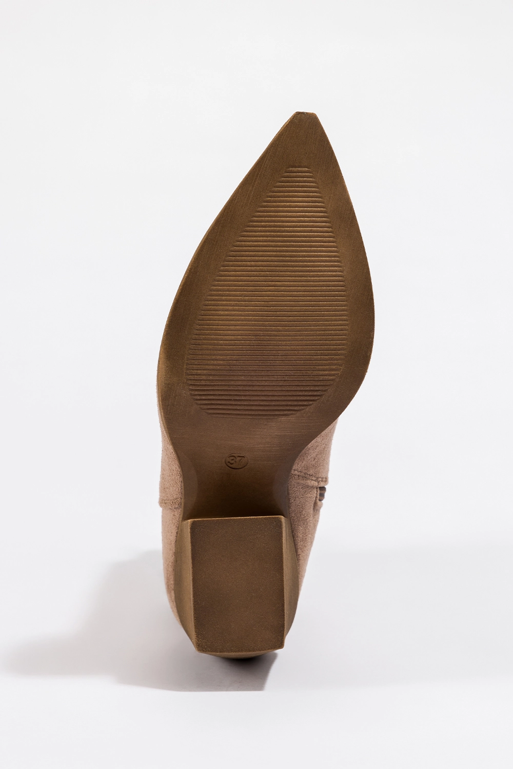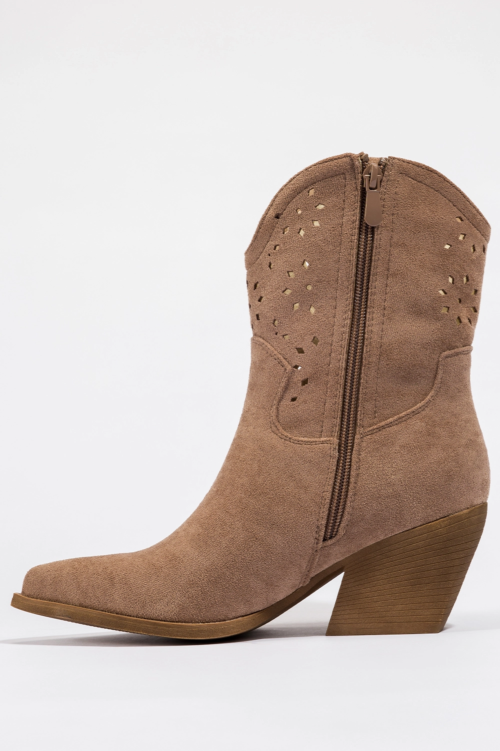 Beżowe botki damskie kowbojki ażurowe na szerokim ściętym klocku Casu JW25X7-K