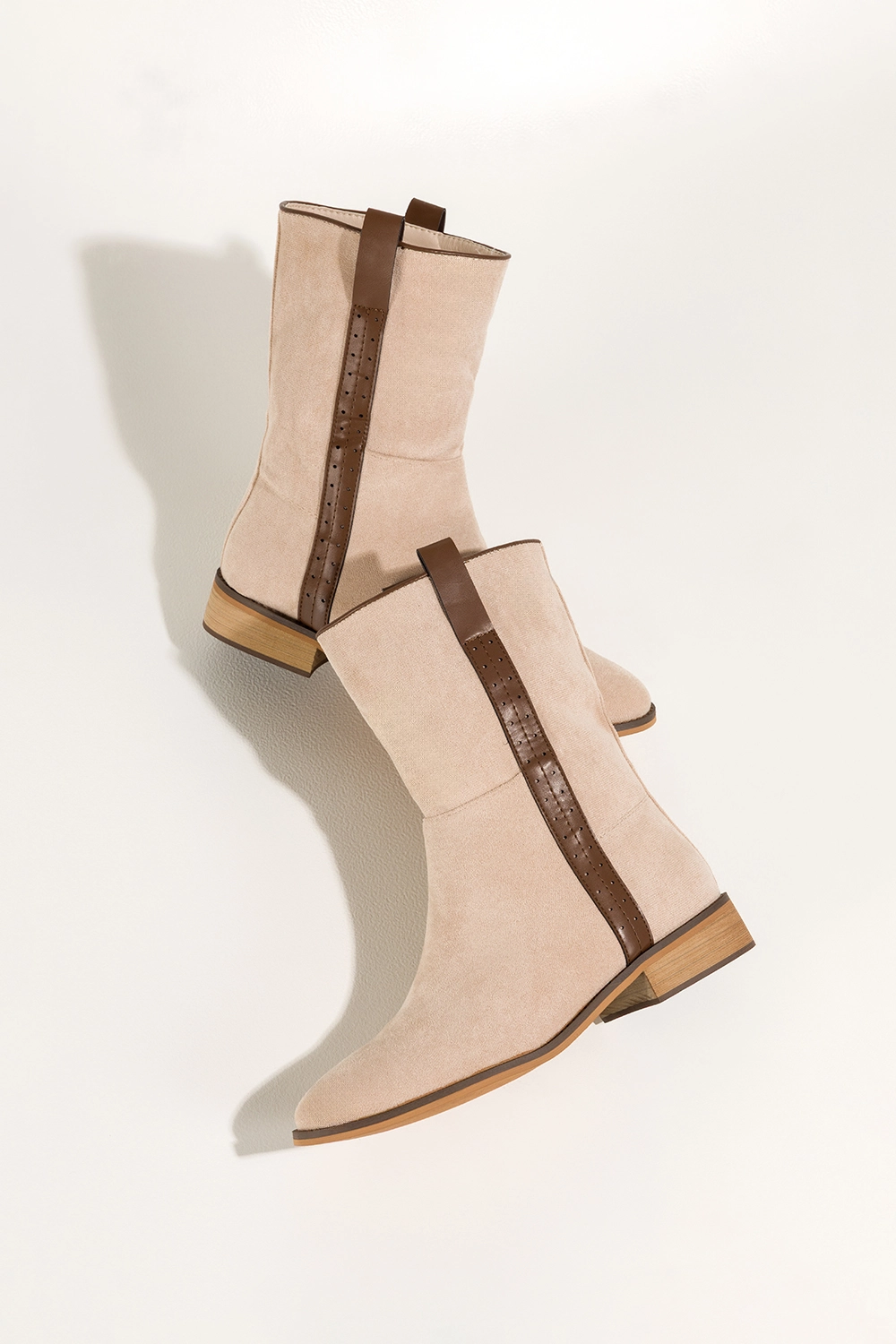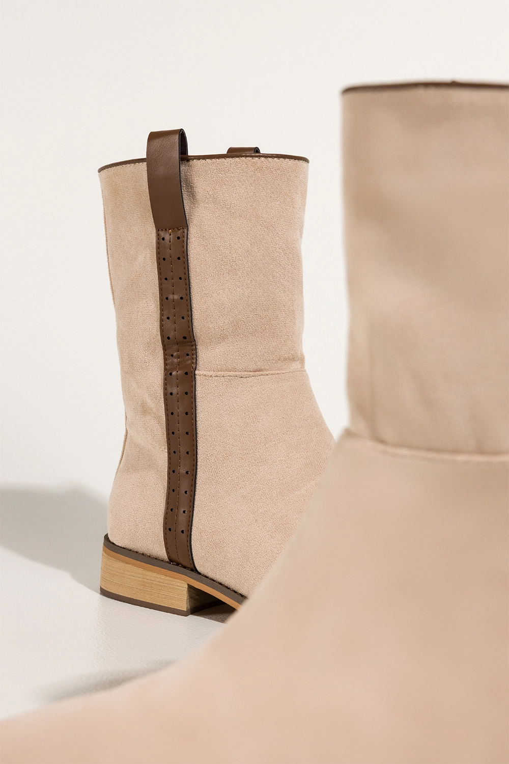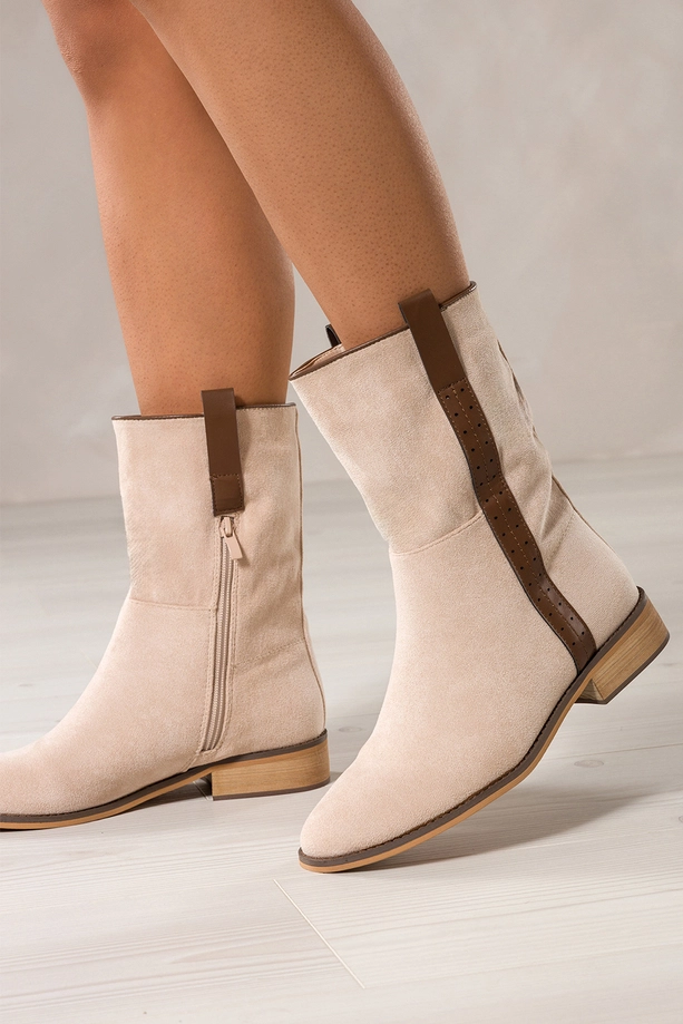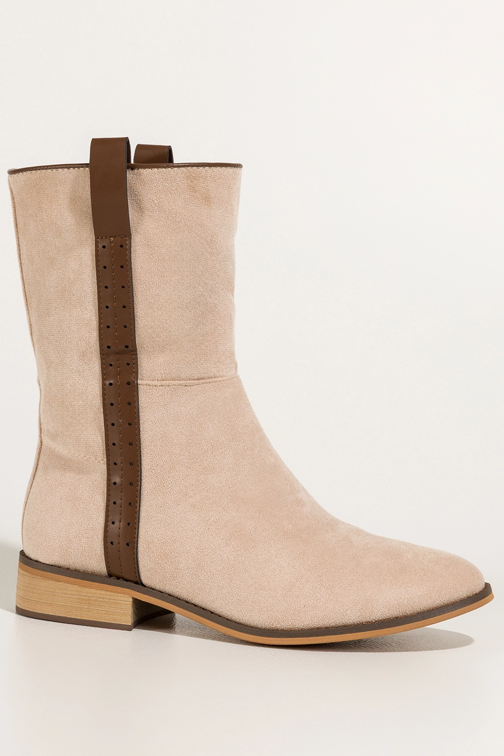 Beżowe botki damskie płaskie brązowy pasek na cholewce Casu model Z0442 to idealne połączenie klasycznego designu, wygody i praktycznego zastosowania w codziennym stylu. Wykonane z wysokogatunkowego zamszu ekologicznego, te botki nie tylko przyciągają uwagę swoim delikatnym kolorem, ale także oferują niezrównany komfort noszenia. Ich starannie dopracowana forma, subtelny zaokrąglony nosek oraz elegancki brązowy pasek ozdobny umieszczony na zewnętrznej stronie cholewki czynią je wyborem, który nie tylko doskonale wygląda, ale też znakomicie się sprawdza w praktyce. Ten model został zaprojektowany z myślą o kobietach, które cenią sobie zarówno estetykę, jak i funkcjonalność, nie rezygnując z żadnego z tych aspektów.