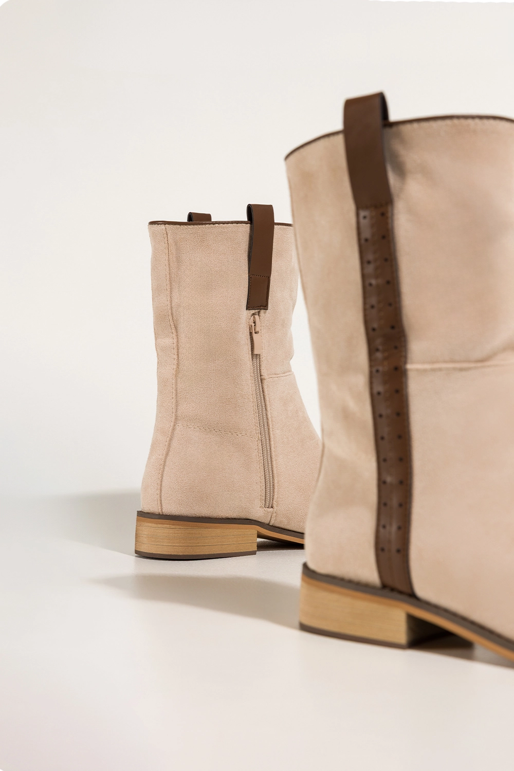 Wyjątkowa jakość i staranność wykonania to jeden z najważniejszych atutów tego modelu. Botki zostały stworzone z dbałością o każdy detal – od miękkiej wkładki materiałowej, przez przyjemne w dotyku wykończenie wnętrza, aż po solidny zamek umieszczony po wewnętrznej stronie cholewki, który ułatwia szybkie zakładanie i zdejmowanie. Ekologiczny zamsz to nie tylko materiał przyjazny dla środowiska, ale również trwały i wyjątkowo estetyczny – jego delikatna faktura dodaje botkom lekkości i klasy. Co więcej, botki zostały wyposażone w płaski obcas o wysokości 3 cm, co zapewnia stabilność i wygodę nawet podczas długiego dnia na nogach. To idealna propozycja dla kobiet, które nie godzą się na kompromis między elegancją a komfortem.