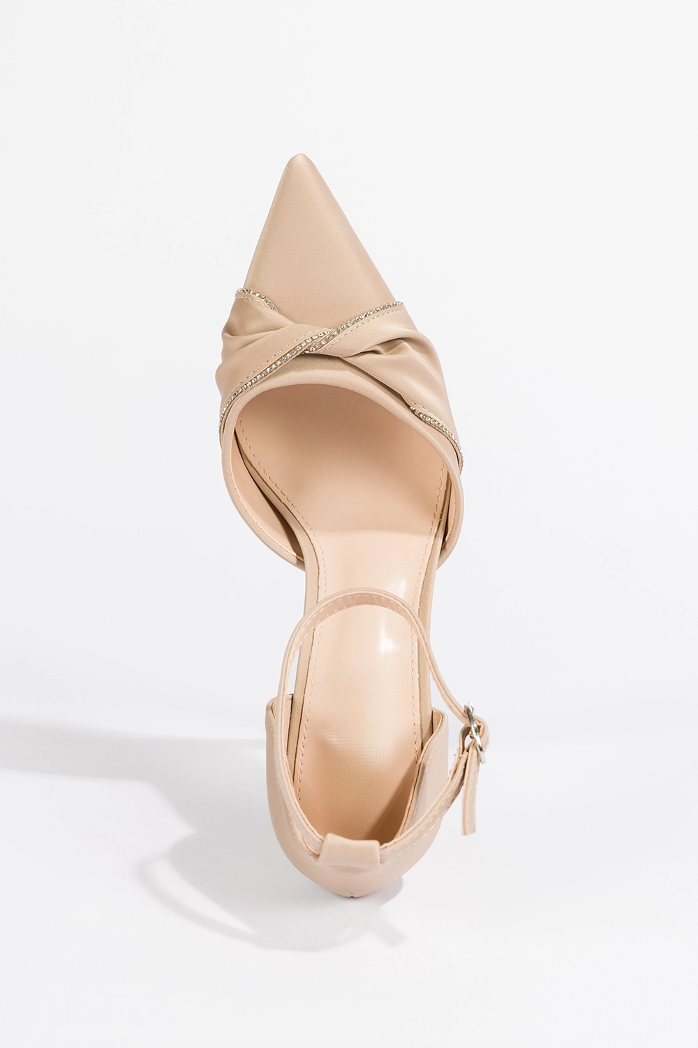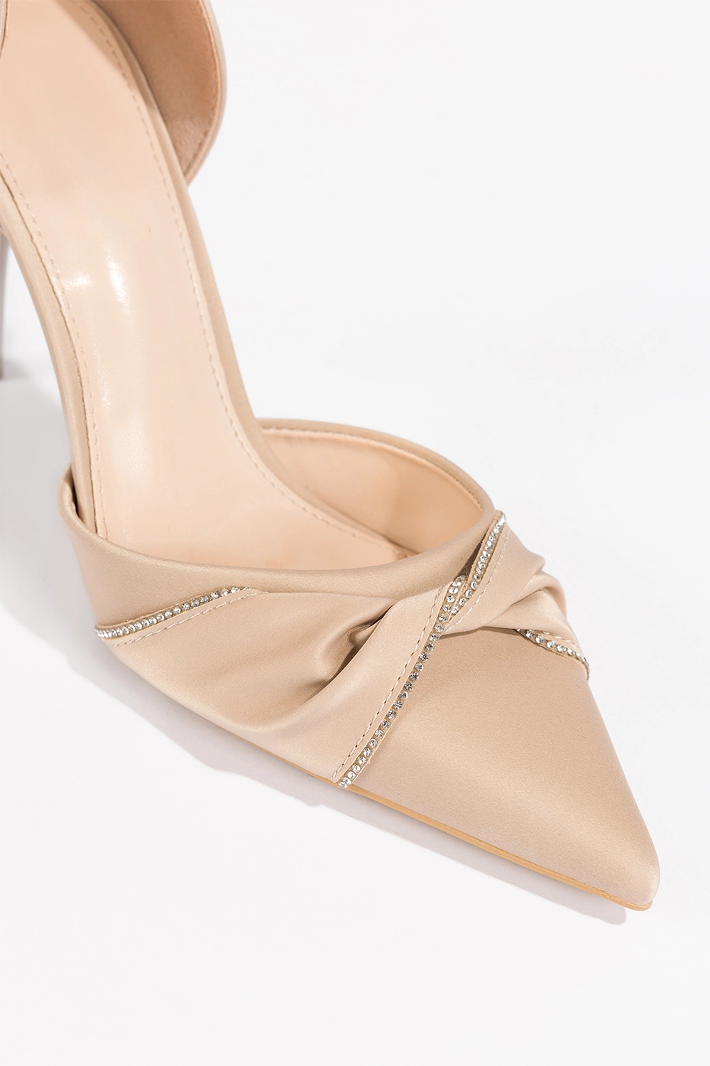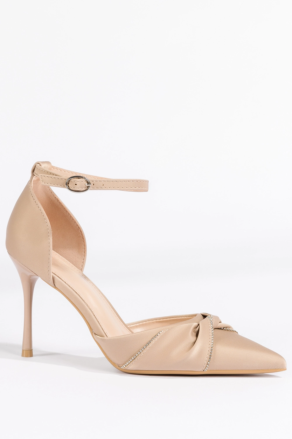 Te czółenka to synonim ponadczasowej elegancji i stylu, który pasuje do wielu okazji – od ślubów, przez wieczorne wyjścia, po oficjalne przyjęcia i uroczystości. Ich beżowy kolor sprawia, że łatwo dopasowują się do różnych odcieni sukienek i dodatków, podkreślając naturalne piękno kobiecej sylwetki. Pasek wokół kostki z subtelną srebrną klamerką nie tylko dodaje uroku, ale również stabilizuje stopę, zapewniając jeszcze większą pewność chodzenia. Szpiczasty nosek optycznie wysmukla stopę, a kokarda z cyrkoniami przyciąga uwagę i dodaje luksusowego charakteru każdej stylizacji. To model, który idealnie sprawdzi się zarówno jako buty na wesele, jak i na randkę czy wieczór w operze.