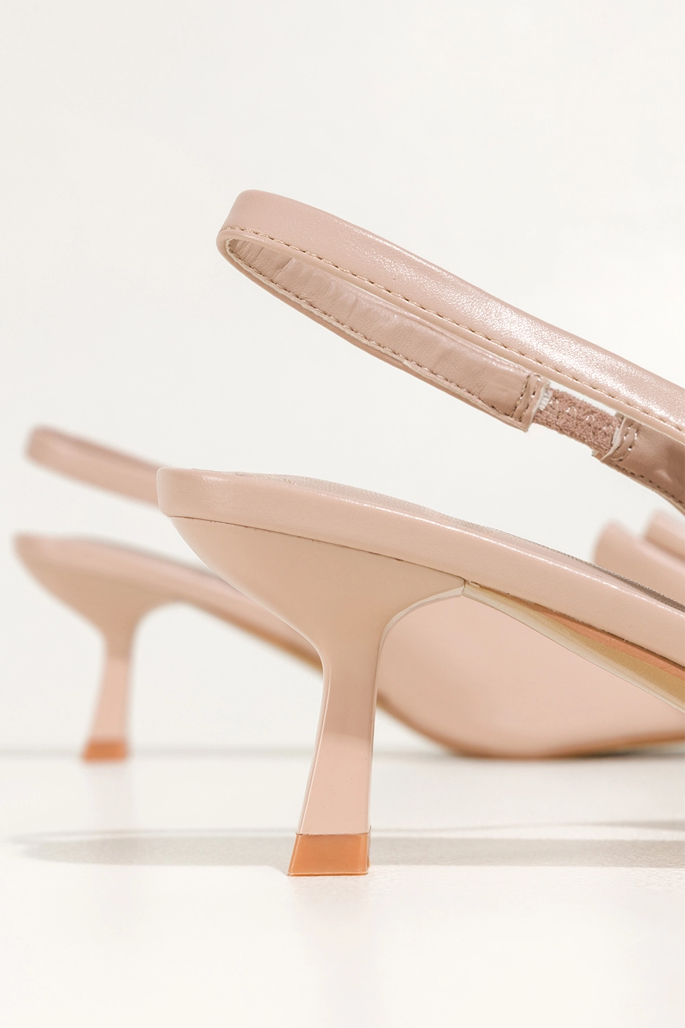 Beżowe czółenka damskie z kokardą obcas kieliszek odkryta pięta elastyczna guma w pasku Carla model N892, elegancja i lekkość w jednym. Ich jasny, harmonijny odcień beżu, szlachetna faktura cholewki oraz szpiczasty nosek tworzą wyjątkowo kobiecą linię. Efektowna kokarda na przodzie dodaje modelowi szyku, a niska forma prezentuje się niezwykle stylowo.