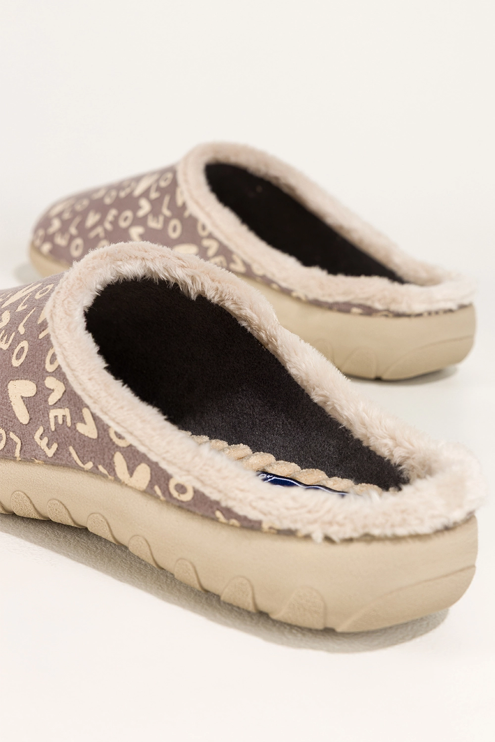 Subtelny beżowy kolor w połączeniu z uroczymi napisami „Love” na cholewce nadaje kapciom romantycznego charakteru. Wsuwana konstrukcja ułatwia szybkie zakładanie i zdejmowanie, co czyni je praktycznym dodatkiem do każdej garderoby. Ich ponadczasowy wygląd doskonale wpisuje się w różne style, od klasycznego po nowoczesny.