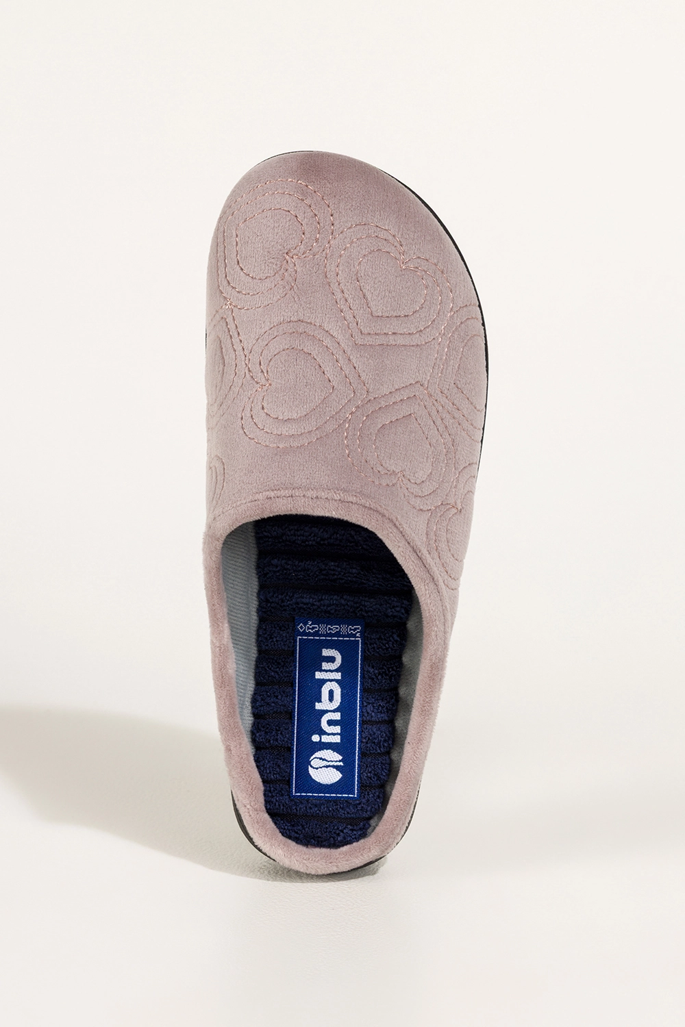 Beżowe kapcie damskie Inblu obuwie domowe z haftowanymi sercami model VXYWLL98, zachwycają starannością detali i wykorzystaniem wysokogatunkowego materiału, który gwarantuje trwałość oraz komfort noszenia. Miękka, materiałowa wkładka i zaokrąglony nosek otulają stopy, zapewniając przyjemne ciepło podczas codziennego użytkowania.