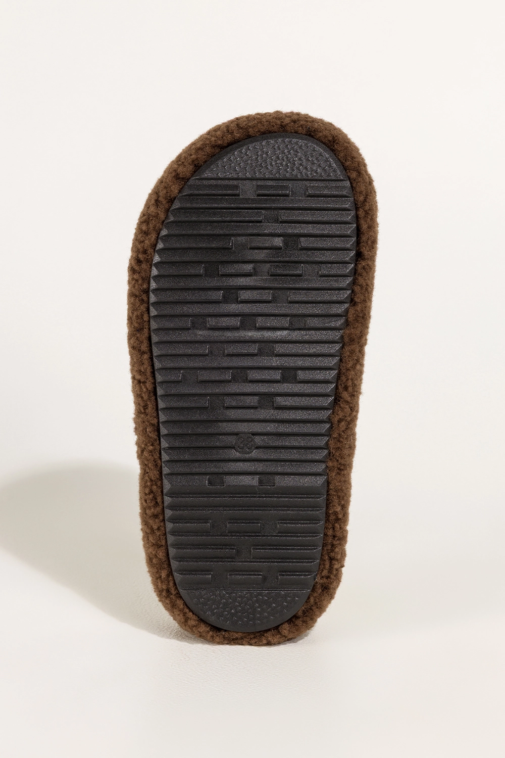 Jakość wykonania, która robi różnicę – model został wykonany z wyjątkową starannością o każdy detal. Materiał typu baranek nie tylko wygląda niezwykle efektownie, ale także jest niezwykle trwały i odporny na deformacje. Wewnętrzna wyściółka z tego samego przyjemnego materiału gwarantuje ciepło nawet w chłodne poranki i wieczory. Kapcie są wsuwane, co oznacza szybkie i wygodne zakładanie bez konieczności schylania się czy zapinania czegokolwiek – idealne rozwiązanie dla kobiet ceniących funkcjonalność i prostotę. Platforma o wysokości 4 cm pokryta materiałem barankowym w kontrastującym brązowym kolorze nie tylko dodaje lekkości sylwetce, ale również amortyzuje każdy krok. To doskonałe obuwie domowe dla kobiet, które cenią połączenie trwałości, estetyki i wygody.