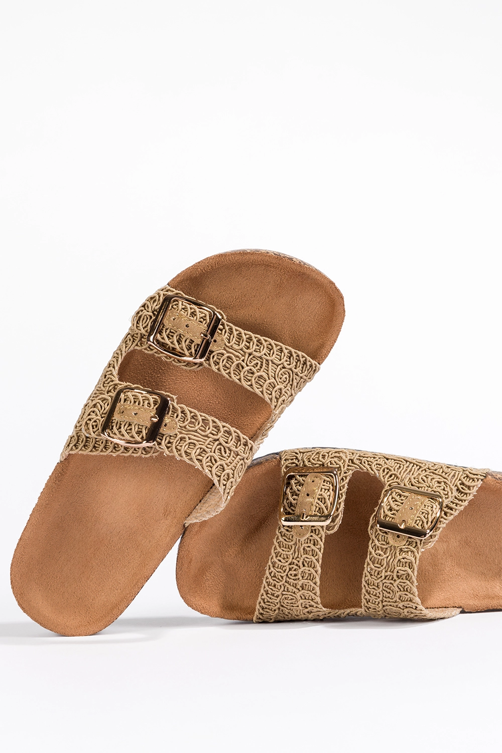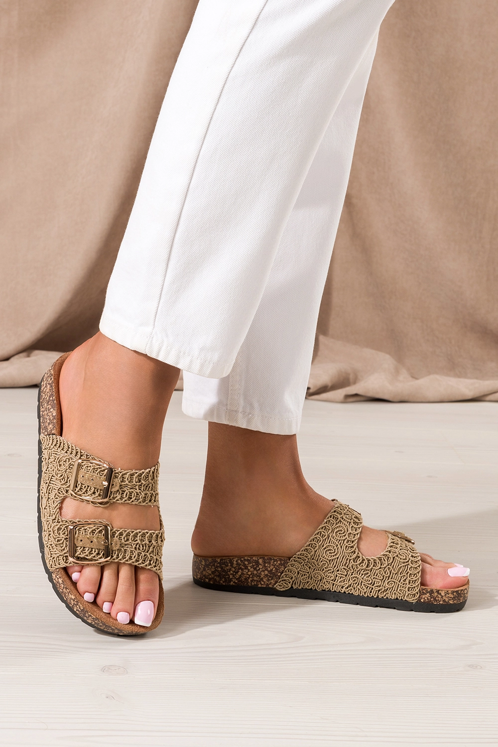 Te wyjątkowe klapki idealnie wpisują się w najnowsze trendy mody, łącząc w sobie zarówno styl boho, jak i nutę nowoczesnej elegancji. Ich pleciona cholewka z ozdobnymi paskami i subtelnymi złotymi klamrami nadaje całości charakteru i delikatnie przełamuje klasykę modnym akcentem. Świetnie komponują się zarówno z letnimi sukienkami, lnianymi szortami, jak i miejskimi stylizacjami z jeansami czy kombinezonem. Ich uniwersalny design sprawia, że sprawdzą się zarówno podczas spacerów po mieście, letnich wyjazdów, jak i luźnych spotkań z przyjaciółmi. Beżowy kolor klapek optycznie wydłuża nogi i świetnie współgra z każdą karnacją, dodając subtelnej elegancji każdemu outfitowi. To must-have w szafie każdej kobiety, która pragnie czuć się stylowo i wygodnie jednocześnie.