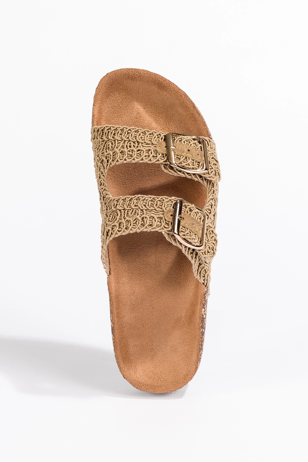 Beżowe klapki damskie plecione na profilowanej korkowej podeszwie paski ze złotymi klamrami Carla model DZ129-1 to propozycja dla kobiet, które poszukują równowagi między elegancją a wygodą. Już na pierwszy rzut oka przyciągają wzrok swoim starannym wykonaniem i dbałością o detale. Model został stworzony z wysokogatunkowego materiału w ponadczasowym odcieniu ciemnego beżu, który podkreśla naturalne piękno kobiecych stylizacji. Ich największym atutem jest miękka, przyjazna dla skóry wkładka oraz profilowana korkowa podeszwa, która zapewnia amortyzację i dopasowuje się do kształtu stopy, gwarantując komfort nawet podczas całodziennego noszenia. Płaska konstrukcja podeszwy to ukłon w stronę minimalizmu i wygody, a jednocześnie podkreślenie miejskiego stylu, który nie wychodzi z mody.