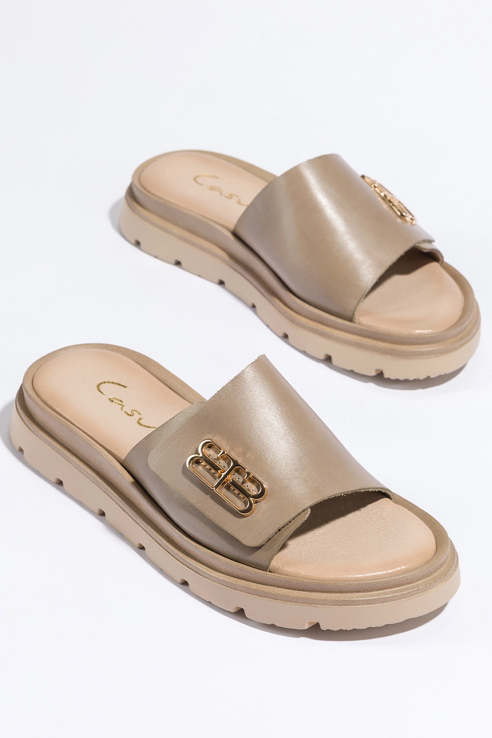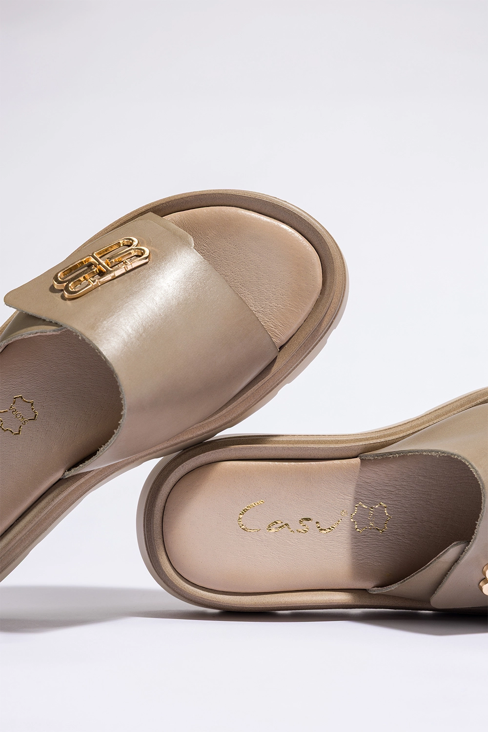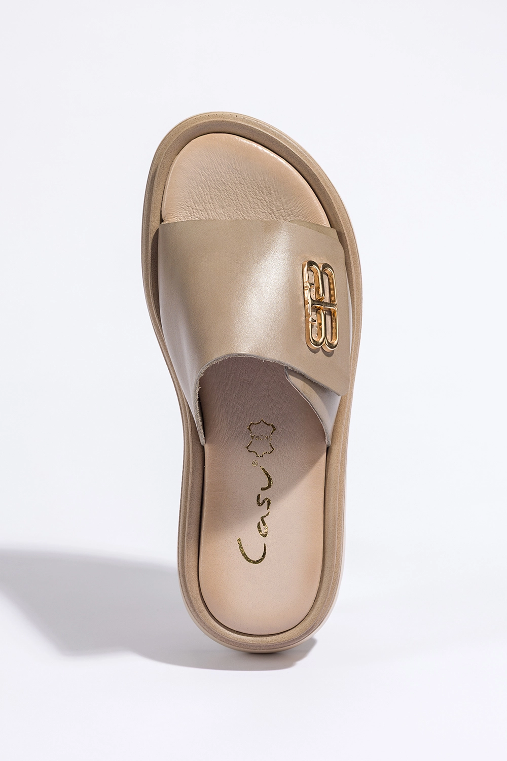 Beżowe klapki skórzane damskie na bieżnikowanej platformie złota ozdoba PRODUKT POLSKI Casu model 40442 to doskonały wybór dla kobiet ceniących sobie elegancję, komfort i uniwersalność. Ten wyjątkowy model łączy w sobie ponadczasowy styl z nowoczesnym designem, podkreślając charakter każdej stylizacji. Wykonane z naturalnej skóry klapki to kwintesencja jakości i klasy, która wpisuje się w potrzeby najbardziej wymagających klientek. Dzięki starannemu wykonaniu i przemyślanej konstrukcji, to nie tylko modne obuwie, ale przede wszystkim codzienna wygoda i trwałość na lata.