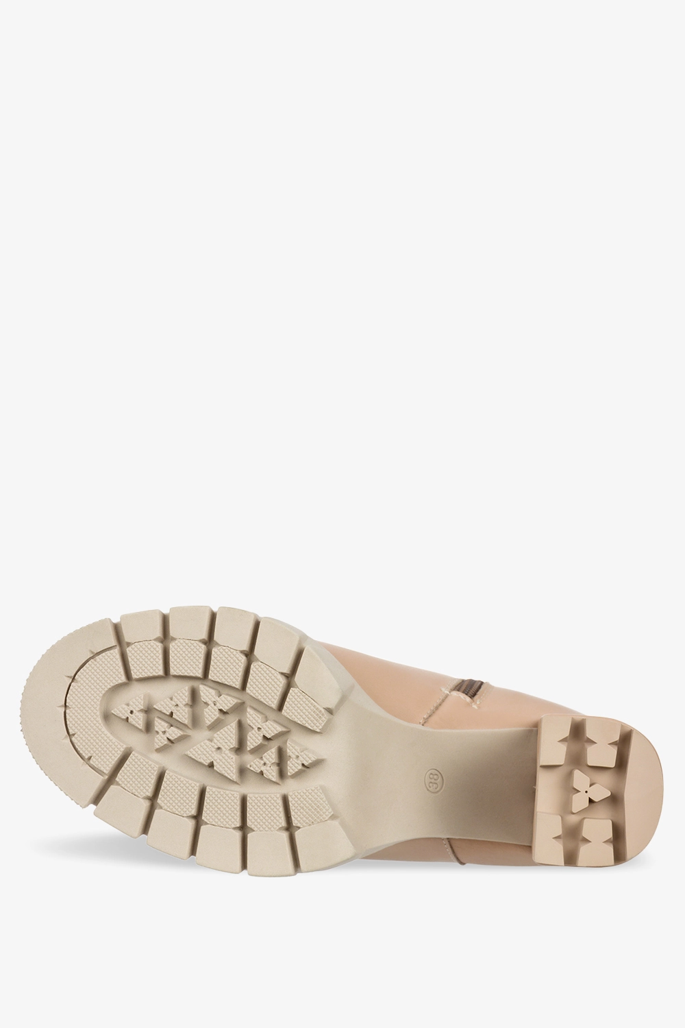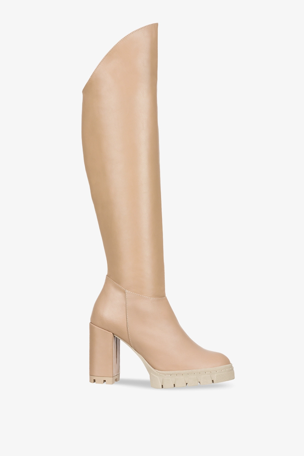 Beżowe kozaki na słupku za kolano POLSKA SKÓRA Casu 4178