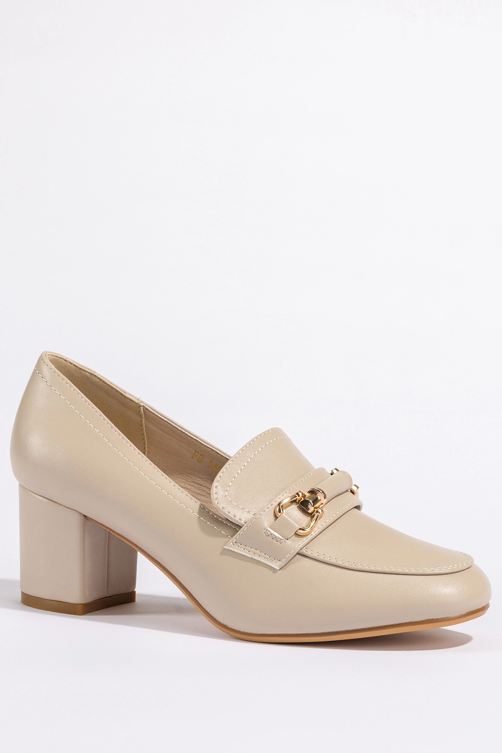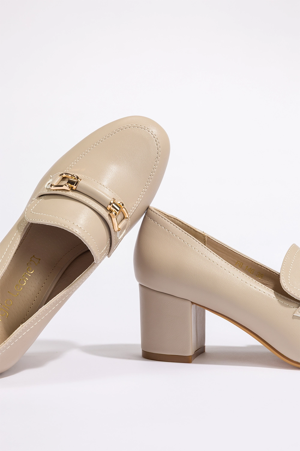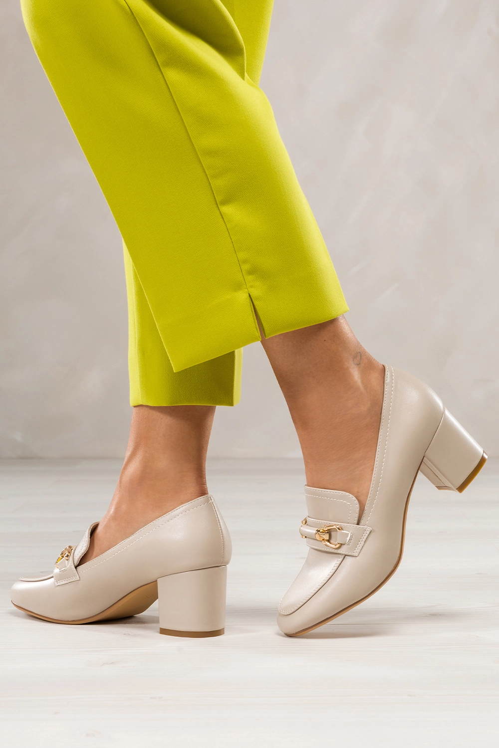 Te wyjątkowe beżowe mokasyny to absolutny must-have w szafie każdej kobiety ceniącej modę i funkcjonalność. Ich klasyczna forma i nowoczesny twist w postaci złotej sprzączki sprawiają, że pasują zarówno do eleganckich garniturów, jak i zwiewnych sukienek czy casualowych jeansów. Beż to kolor neutralny, który świetnie komponuje się z niemal każdą barwą, dzięki czemu mokasyny te można nosić przez cały rok, niezależnie od pory roku i obowiązujących trendów. Obcas w formie szerokiego słupka nie tylko optycznie wysmukla sylwetkę, ale też dodaje stylizacji kobiecego charakteru. To idealne buty na spotkania biznesowe, randki, uroczystości rodzinne czy weekendowe wypady ze znajomymi. Ich subtelna elegancja nigdy nie wyjdzie z mody.
