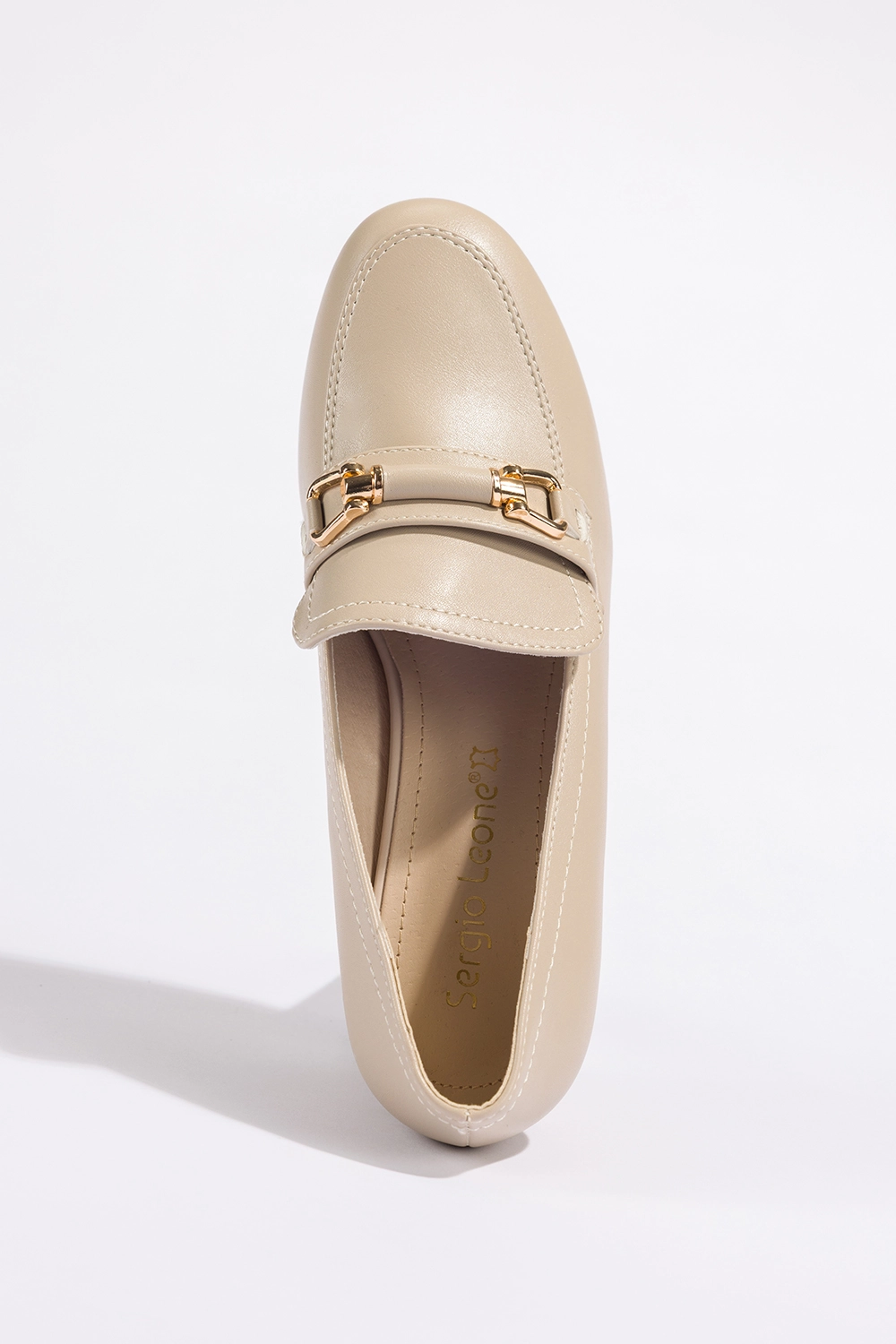 Beżowe mokasyny damskie Sergio Leone ze sprzączką na szerokim słupku skórzana wkładka model PB146-CA to kwintesencja ponadczasowej elegancji i codziennego komfortu. Ten wyjątkowy model został zaprojektowany z myślą o kobietach, które poszukują balansu między szykiem a wygodą, nie rezygnując przy tym z modowego wyrazu. Mokasyny wykonane są z wysokogatunkowej skóry ekologicznej, dzięki czemu łączą w sobie troskę o środowisko z luksusowym wyglądem i trwałością. Miękka skórzana wkładka zapewnia niezrównany komfort noszenia przez cały dzień, nawet w intensywnym tempie życia. Ich subtelny, beżowy kolor oraz delikatnie zaokrąglony nosek sprawiają, że to obuwie z łatwością dopasuje się do wielu stylizacji – od klasycznych, biurowych zestawów po luźniejsze, codzienne outfity.