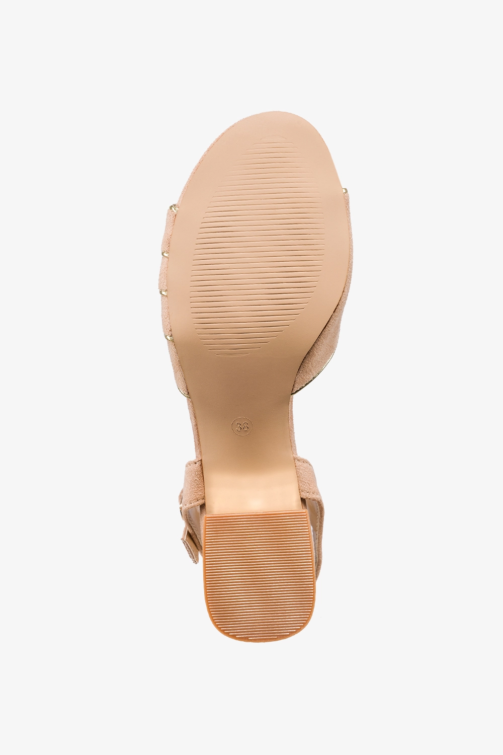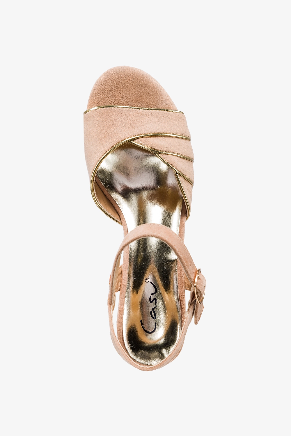 Beżowe sandały damskie na ozdobnym klocku Casu ER24X10-BE