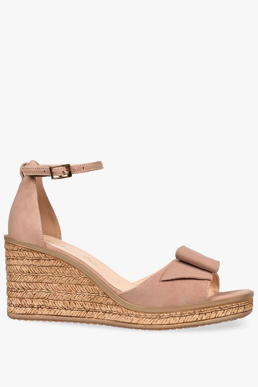 Beżowe sandały skórzane damskie espadryle na koturnie z zakrytą piętą pasek wokół kostki kokarda PRODUKT POLSKI Casu 2651-339-N to synonim elegancji, komfortu i wyjątkowego stylu. Ten produkt to połączenie ponadczasowej klasyki z nowoczesnym designem, które zadowoli nawet najbardziej wymagające miłośniczki mody. Wykonane z wysokogatunkowej skóry zamszowej, z miękką wkładką skórzaną, sandały nie tylko pięknie się prezentują, ale także gwarantują niezwykły komfort noszenia przez cały dzień. Ich delikatny beżowy kolor doskonale komponuje się z każdą garderobą, czyniąc z nich uniwersalny wybór na wiele okazji – od letniego spaceru po plaży, przez spotkania biznesowe, aż po romantyczne kolacje.
