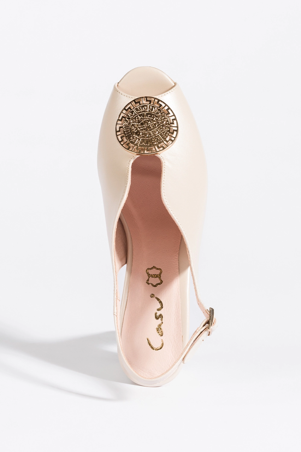 Beżowe sandały skórzane damskie z perłową powłoką na szerokim klocku ze złotą ozdobą PRODUKT POLSKI Casu model 3567-O to kwintesencja kobiecej elegancji i wygody, której trudno się oprzeć. Stworzone z myślą o kobietach, które cenią wysoką jakość, stylowy wygląd i komfort noszenia przez cały dzień. Wykonane z naturalnej skóry licowej, wykończone subtelną perłową powłoką, która mieni się w słońcu i nadaje całości wyjątkowy, luksusowy charakter. Ten model to nie tylko obuwie – to dopełnienie każdej stylizacji, które przyciąga spojrzenia i dodaje klasy zarówno w codziennych, jak i wyjątkowych momentach. Idealnie sprawdzi się latem, oferując nie tylko przewiewność, ale również maksymalną wygodę dzięki miękkiej, skórzanej wkładce.