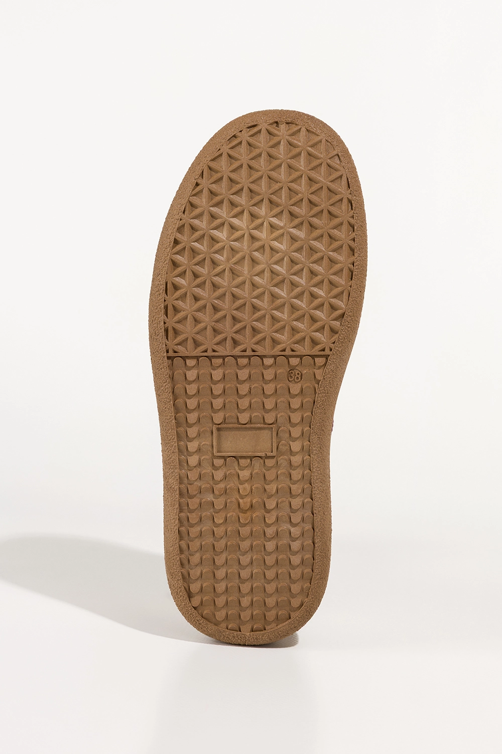 Wysoka jakość wykonania i przemyślana konstrukcja to fundament modelu. Sneakersy powstały z połączenia ekologicznej skóry o gładkiej strukturze i miękkiego, matowego zamszu ekologicznego, co tworzy efektowny kontrast tekstur. Dzięki temu buty wyglądają luksusowo, a przy tym są przyjazne środowisku. Zastosowanie wyjmowanej, miękkiej wkładki tekstylnej sprawia, że obuwie doskonale dopasowuje się do stopy, niwelując uczucie zmęczenia nawet po intensywnym dniu. Beżowa platforma o nowoczesnym designie nie tylko unosi sylwetkę, optycznie ją wysmuklając, ale też doskonale izoluje stopę od nierównego podłoża.
