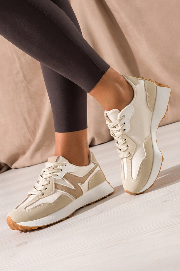 Uniwersalny styl i ponadczasowa estetyka Dzięki swojej stonowanej kolorystyce i subtelnym ciemnobeżowym wstawkom z łatwością wpisują się w różnorodne stylizacje – od casualowych zestawów z jeansami, przez minimalistyczne outfity z dzianinowymi sukienkami, aż po bardziej sportowe looki z legginsami. Te beżowe sneakersy damskie stanowią doskonałą alternatywę dla klasycznych trampek czy balerin, dodając stylizacji nuty nowoczesności i nonszalancji. Niezależnie od okazji – codzienne obowiązki, wyjście na zakupy, uczelnia czy spotkanie ze znajomymi – model sprawdzi się doskonale, zachowując przy tym elegancję i kobiecość. Warto podkreślić, że ich subtelna estetyka i modny design sprawiają, że są to buty, które nigdy nie wyjdą z mody.