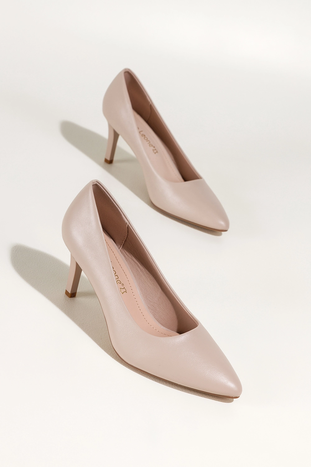Beżowe szpilki damskie Sergio Leone skórzana wkładka model 8663, zachwycają subtelnym blaskiem i ponadczasową prostotą. Delikatny, beżowy odcień pięknie wysmukla stopę, a gładka faktura wysokogatunkowej skóry ekologicznej dodaje im szlachetności. Smukła linia cholewki, szpiczasty nosek oraz perfekcyjnie wyważony obcas tworzą harmonijną, wyjątkowo kobiecą całość.