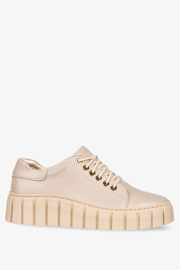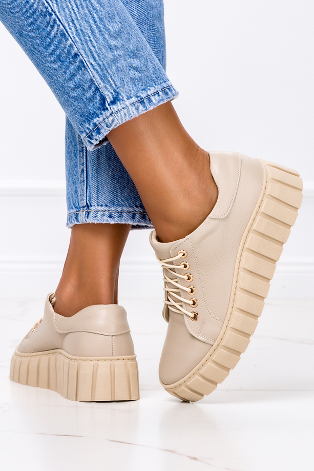 Beżowe trampki skórzane damskie creepersy sznurowane PRODUKT POLSKI Casu 469