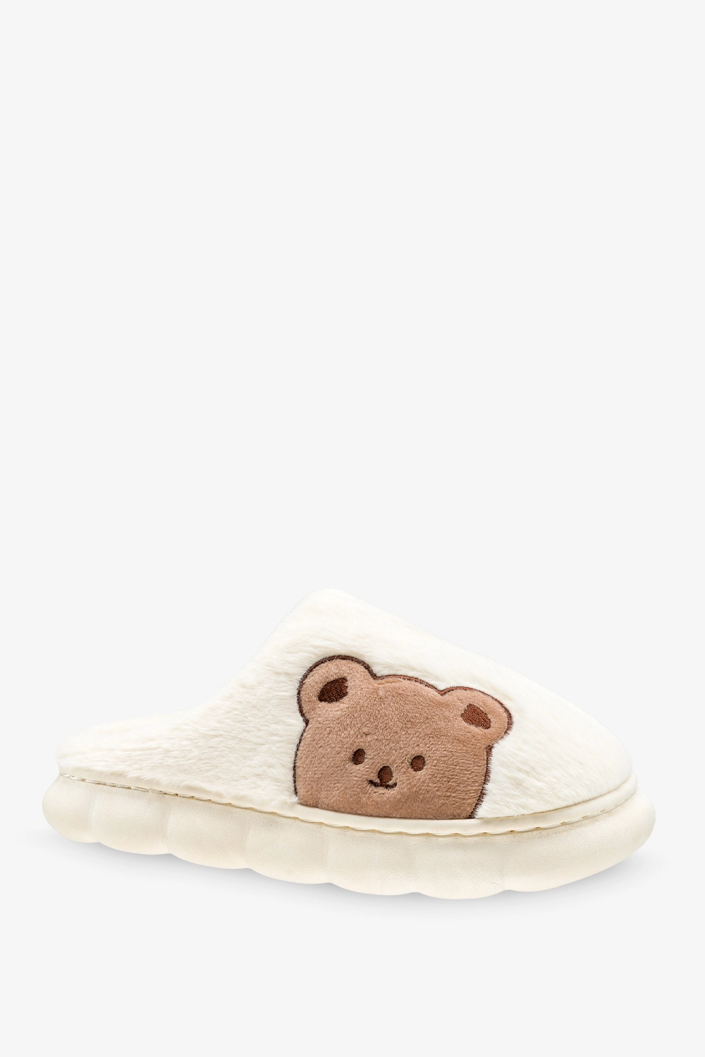 Kapcie wyróżniają się uroczym akcentem w postaci naszywki z misiem na cholewce. To drobny, ale znaczący detal, który dodaje im unikalnego charakteru. Uniwersalny biały kolor sprawia, że kapcie pasują do każdego domowego stroju, a jednocześnie prezentują się elegancko i schludnie. Futerko na całej powierzchni nadaje im luksusowego wyglądu, dzięki czemu te kapcie stają się czymś więcej niż tylko obuwiem domowym – to prawdziwy dodatek modowy.