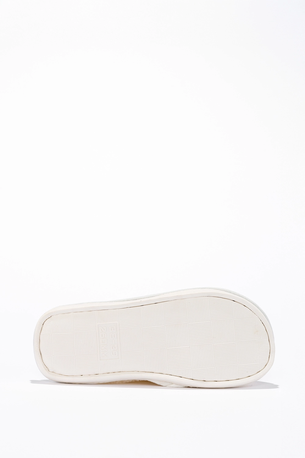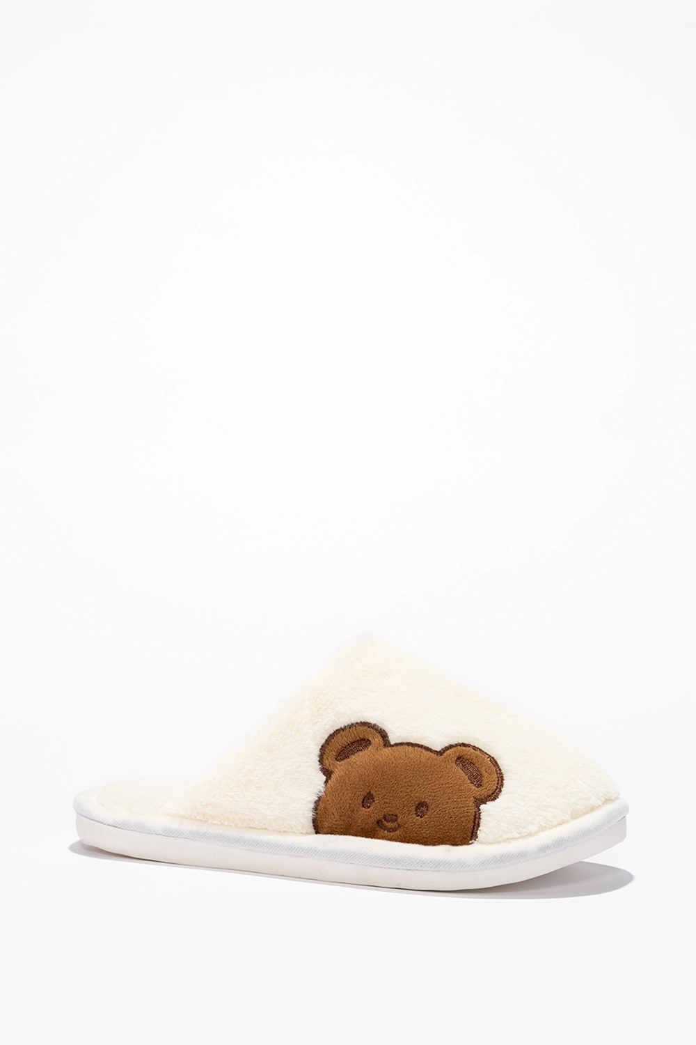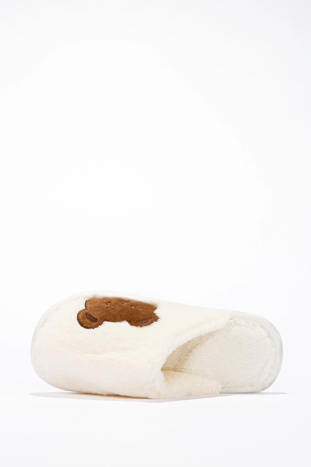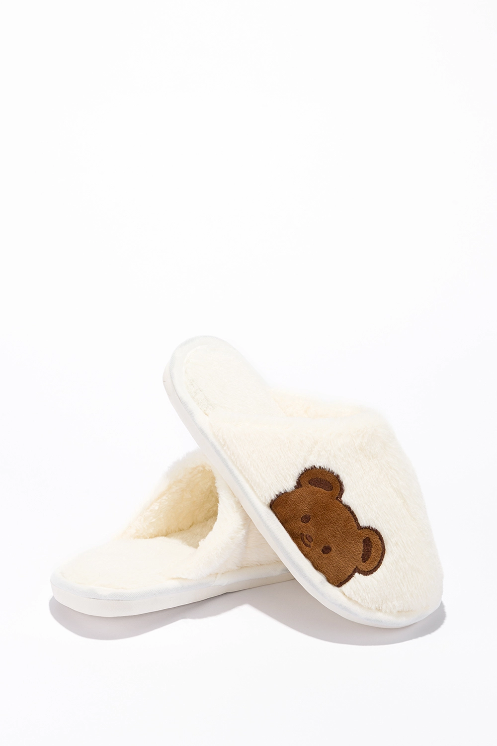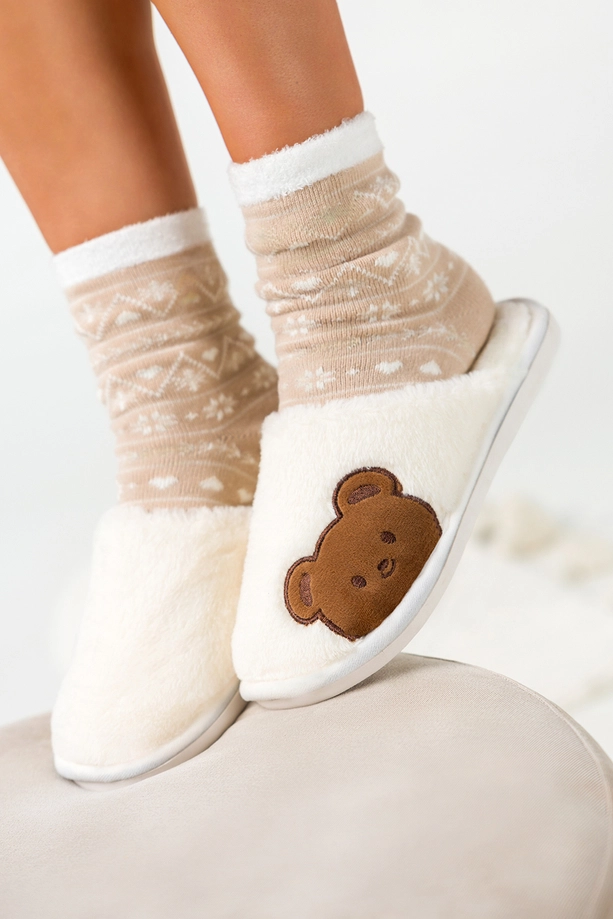 Białe kapcie damskie obuwie domowe futrzane z misiem Casu B23-3