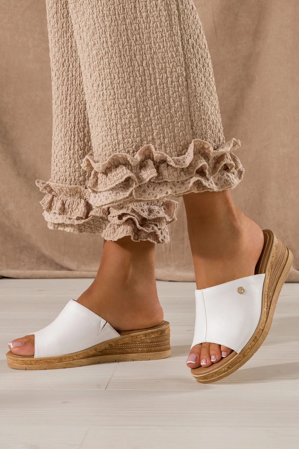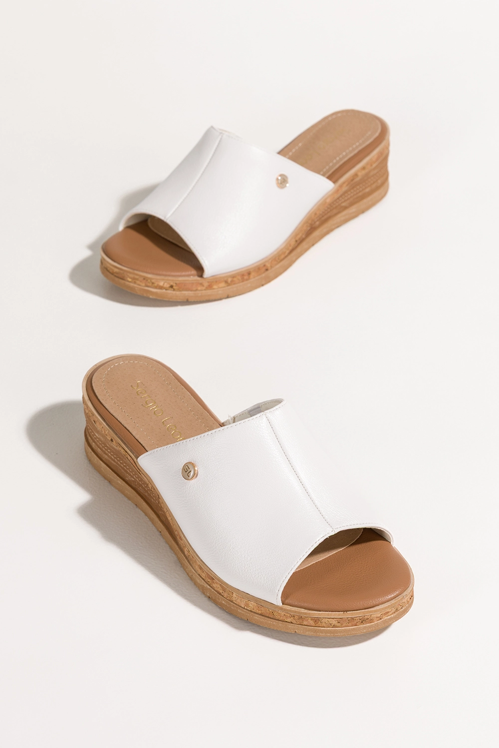 Białe klapki damskie Sergio Leone zabudowane na koturnie złota ozdoba skórzana wkładka metki KL191-CA to kwintesencja letniego szyku i kobiecej elegancji zamknięta w formie wygodnego obuwia. Te stylowe klapki to idealne połączenie estetyki i funkcjonalności, które zachwyca już od pierwszego spojrzenia. Ich zabudowana cholewka ze złotą ozdobą dodaje całości luksusowego charakteru, sprawiając, że doskonale odnajdą się zarówno w codziennych, jak i bardziej formalnych stylizacjach. Niezwykle praktyczne, a jednocześnie zjawiskowo piękne – to propozycja dla kobiet, które nie chcą wybierać między wygodą a stylem. Skórzana wkładka oraz koturn z ozdobnym wzorem zapewniają komfort noszenia przez cały dzień, nawet w upalne dni.