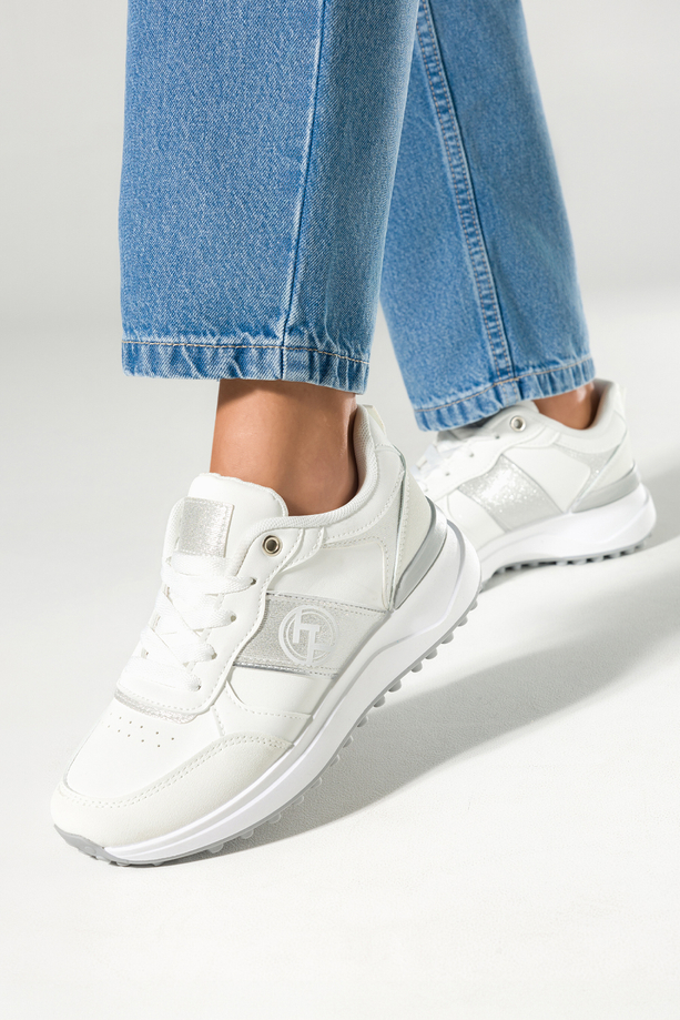 Białe sneakersy damskie model SJ2395-2 zostały wykonane z wysokiej jakości skóry ekologicznej. Buty sportowe często zaskakują designem. Nawet białe sneakersy mogą być niebanalne i wyróżniać się szczegółami. Lubisz błyszczące detale, które urozmaicają całość? Postaw na buty ze srebrnymi elementami na cholewce. Białe buty sportowe to idealne połączenie stylu, wygody i funkcjonalności. Ich klasyczny design i dodatkowe błyszczące wstawki w srebrnym kolorze nadają im charakteru i sprawiają, że wyróżniają się spośród innych modeli. Pasują do wielu różnych stylizacji, zarówno sportowych jak i casualowych, dodając im świeżości i elegancji. Posiadają tradycyjny system sznurowania, który umożliwia dostosowanie ich do indywidualnych preferencji i optymalnego dopasowania. Charakterystyczną cechą tych butów jest bieżnikowana platforma, która dodaje kilku centymetrów do Twojego wzrostu. Modną propozycją jest również noszenie białych sneakersów do damskiego garnituru. Łączenie stylu sportowego z eleganckim jest bardzo na czasie! Wybierz swojego faworyta na Casu.pl.