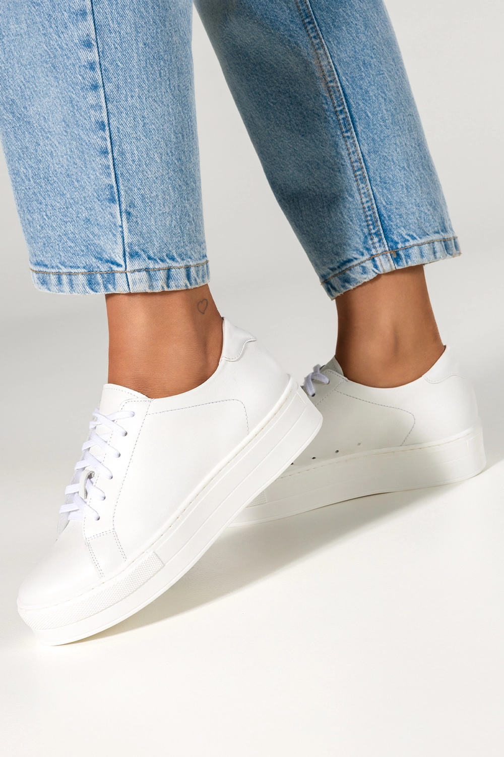 Białe sneakersy skórzane damskie creepersy sznurowane PRODUKT POLSKI Casu 2691 to idealne połączenie nowoczesnego designu, wygody i ponadczasowej elegancji. Wykonane z najwyższej jakości skóry naturalnej, zachwycają nie tylko estetyką, ale i trwałością. Te wyjątkowe creepersy to odpowiedź na potrzeby kobiet, które cenią sobie modny wygląd i komfort każdego dnia. Sznurowane białe sneakersy wyróżniają się zaokrąglonym noskiem, delikatnie podwyższoną białą platformą oraz skórzaną wkładką, która doskonale dopasowuje się do stopy. Polski producent zadbał o każdy detal, tworząc obuwie, które sprosta oczekiwaniom nawet najbardziej wymagających użytkowniczek.