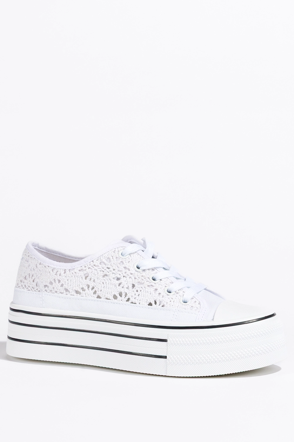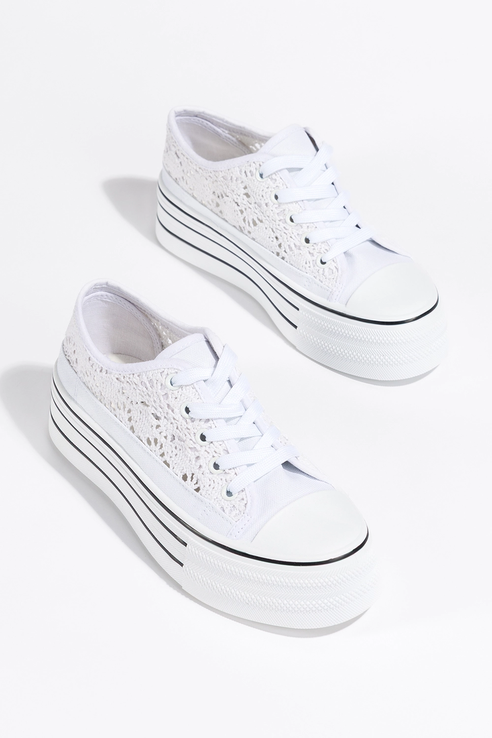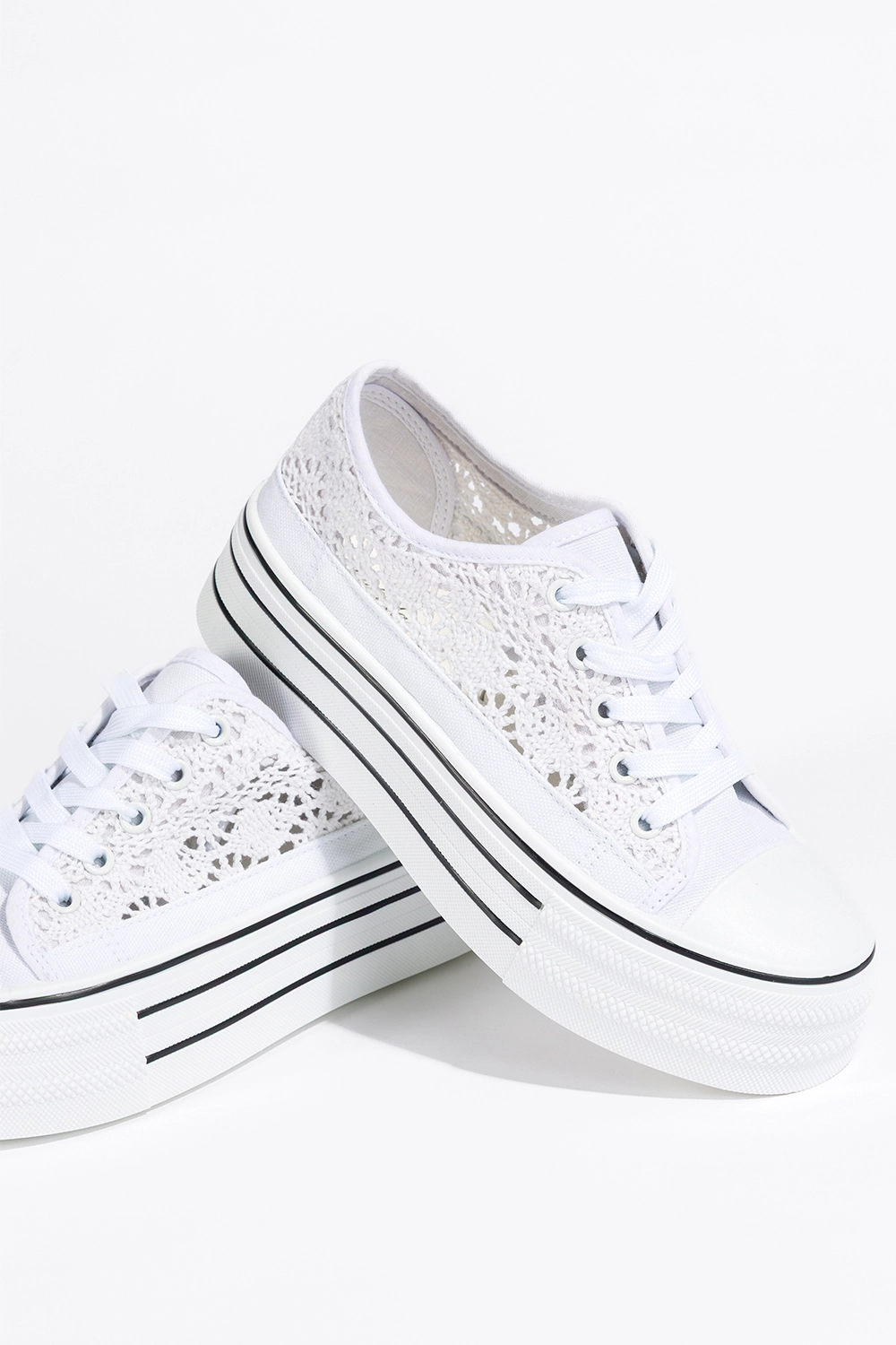 Białe trampki damskie ażurowe sneakersy na platformie koronkowe sznurowane Carla BA152-41