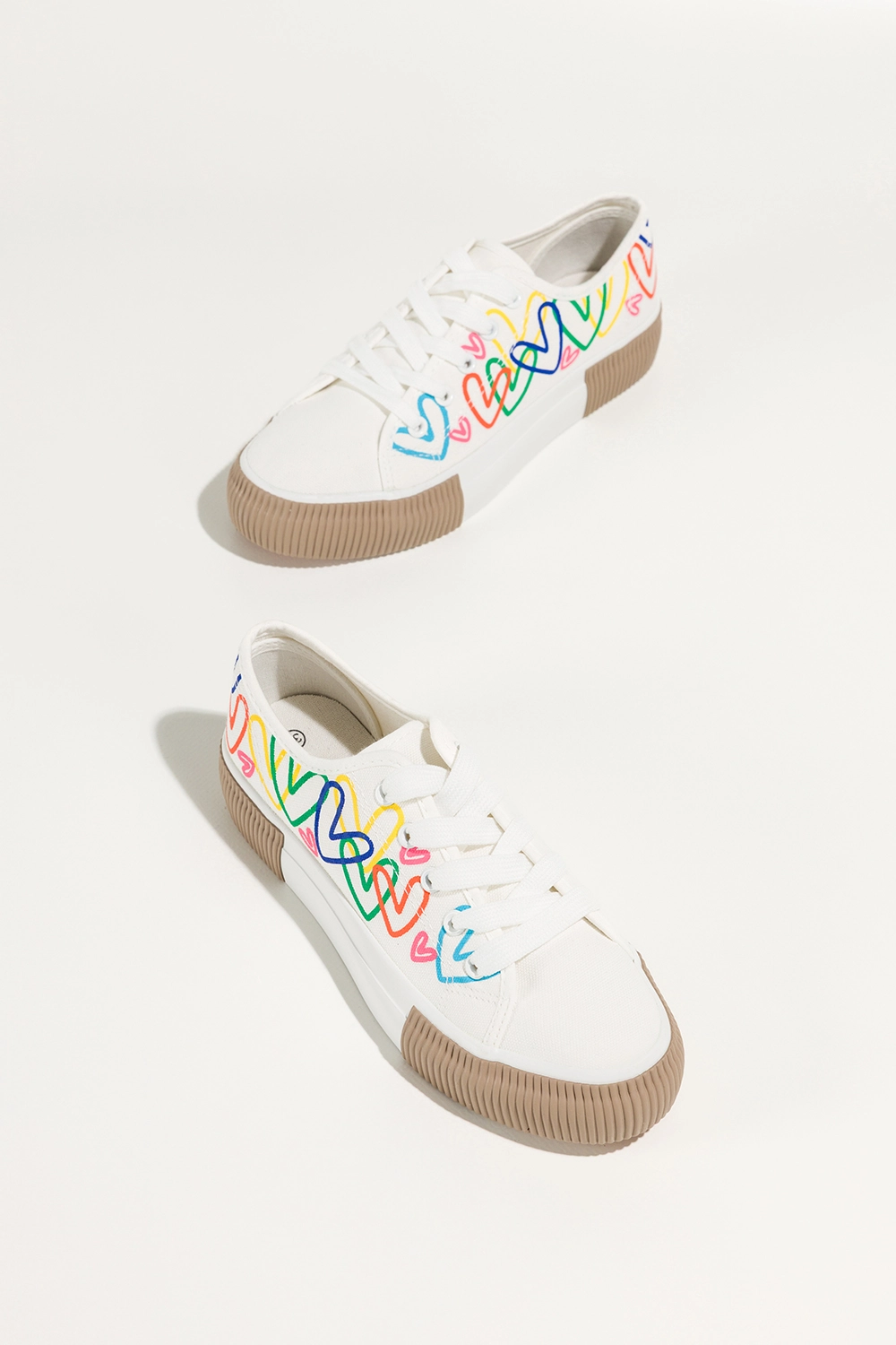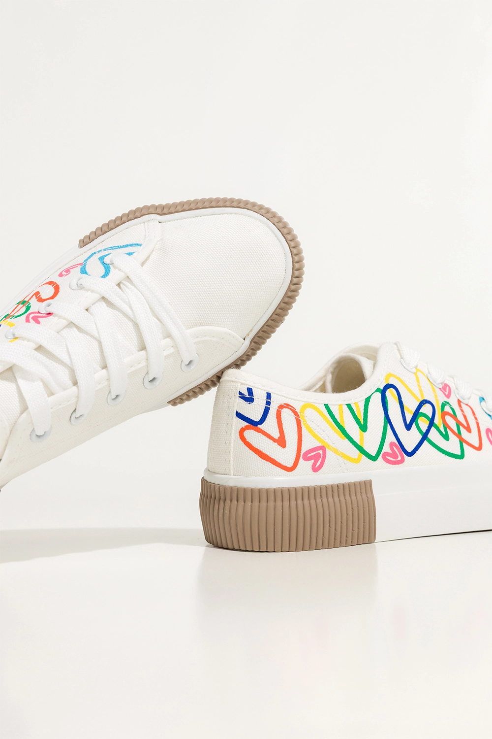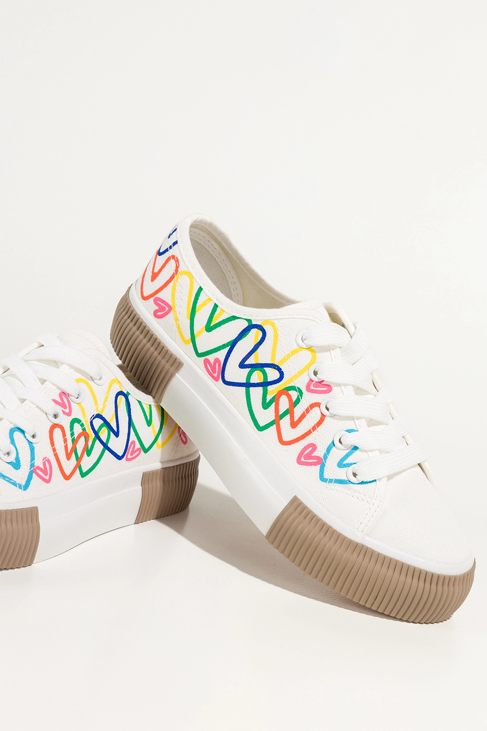 Unikalny design i detale, które przyciągają spojrzenia są zdecydowanym atutem tego modelu. Wyróżniają się kolorowymi sercami nadrukowanymi na cholewce, co dodaje im wyjątkowego uroku i odrobiny dziewczęcej radości. To niebanalne rozwiązanie, które przyciąga uwagę i podkreśla Twoją osobowość. Białe sznurówki i harmonijnie dobrana platforma nadają butom lekkości, jednocześnie podkreślając ich nowoczesną formę. To propozycja dla kobiet, które nie boją się wyrażać siebie poprzez modę i chcą wyróżniać się z tłumu. Ich lekkość, elastyczna podeszwa oraz wygodna cholewka sprawiają, że są nie tylko efektowne wizualnie, ale również niezwykle funkcjonalne.