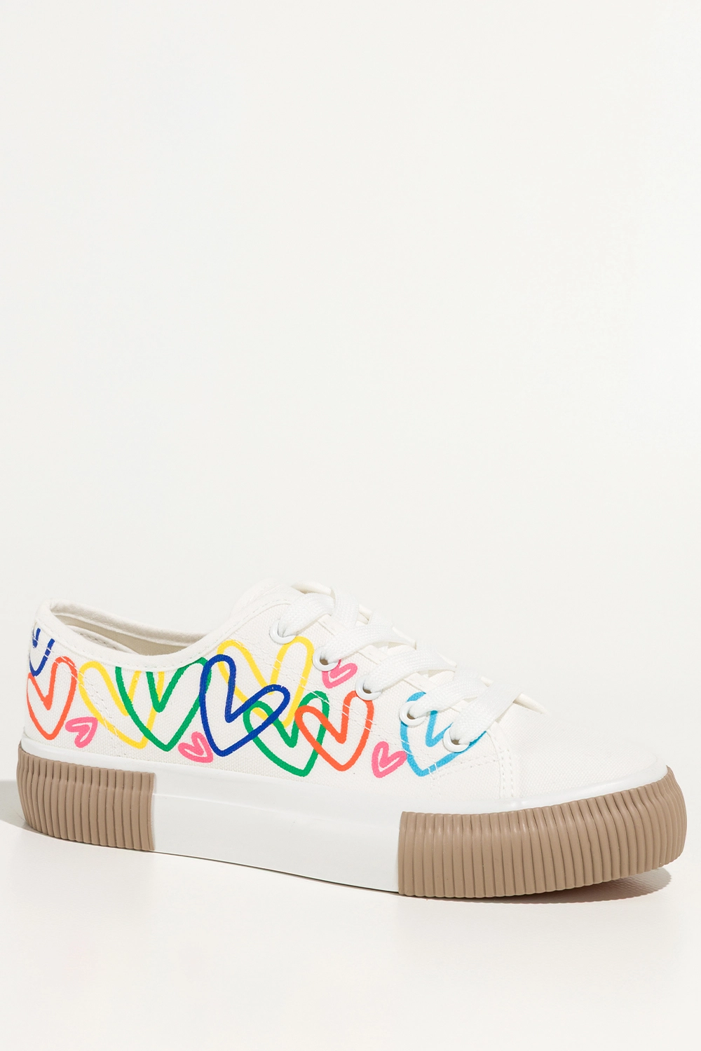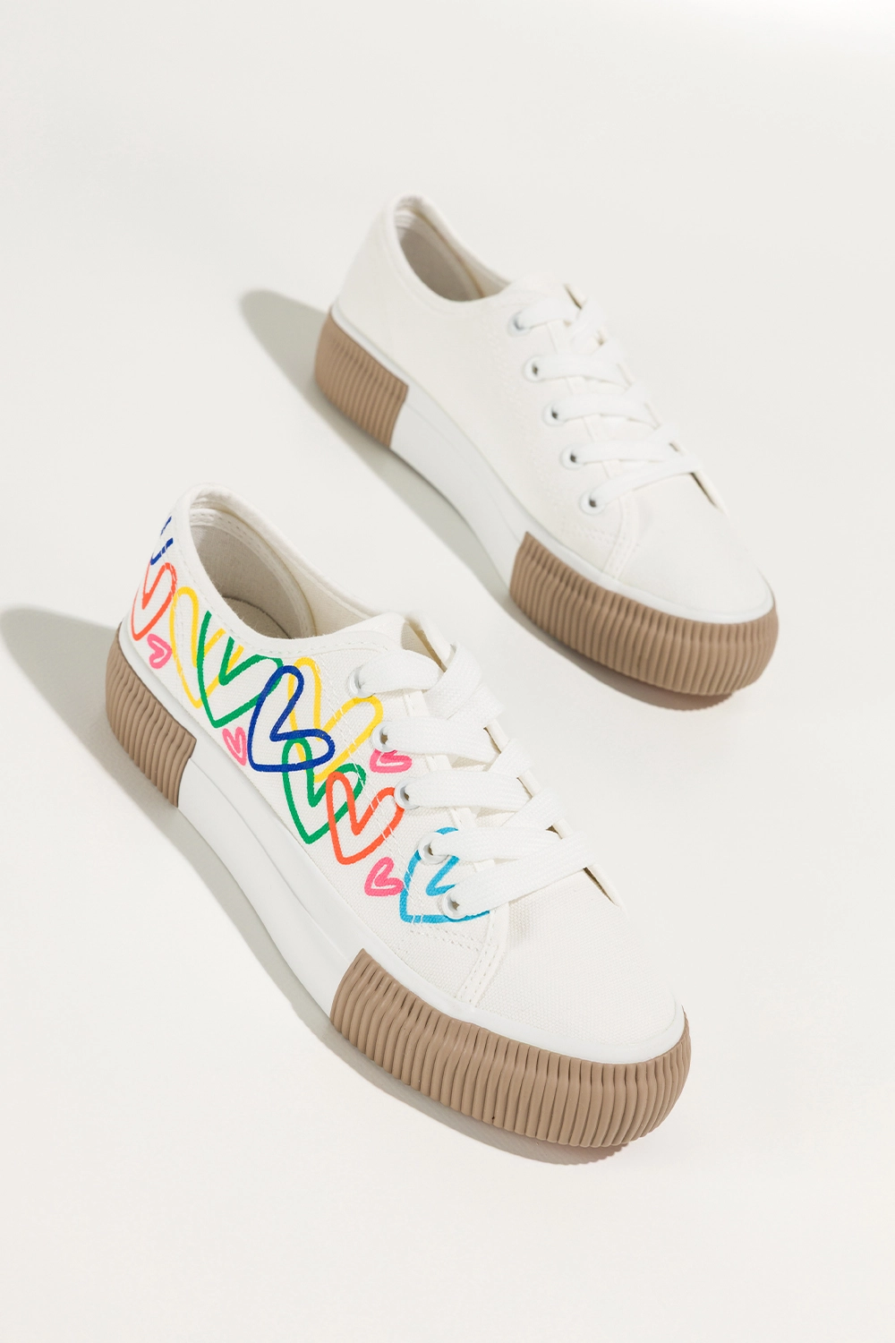 Białe trampki damskie sneakersy z kolorowymi sercami na platformie sznurowane Carla QY853-9