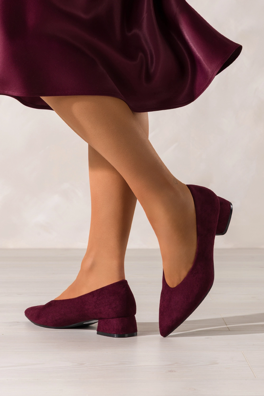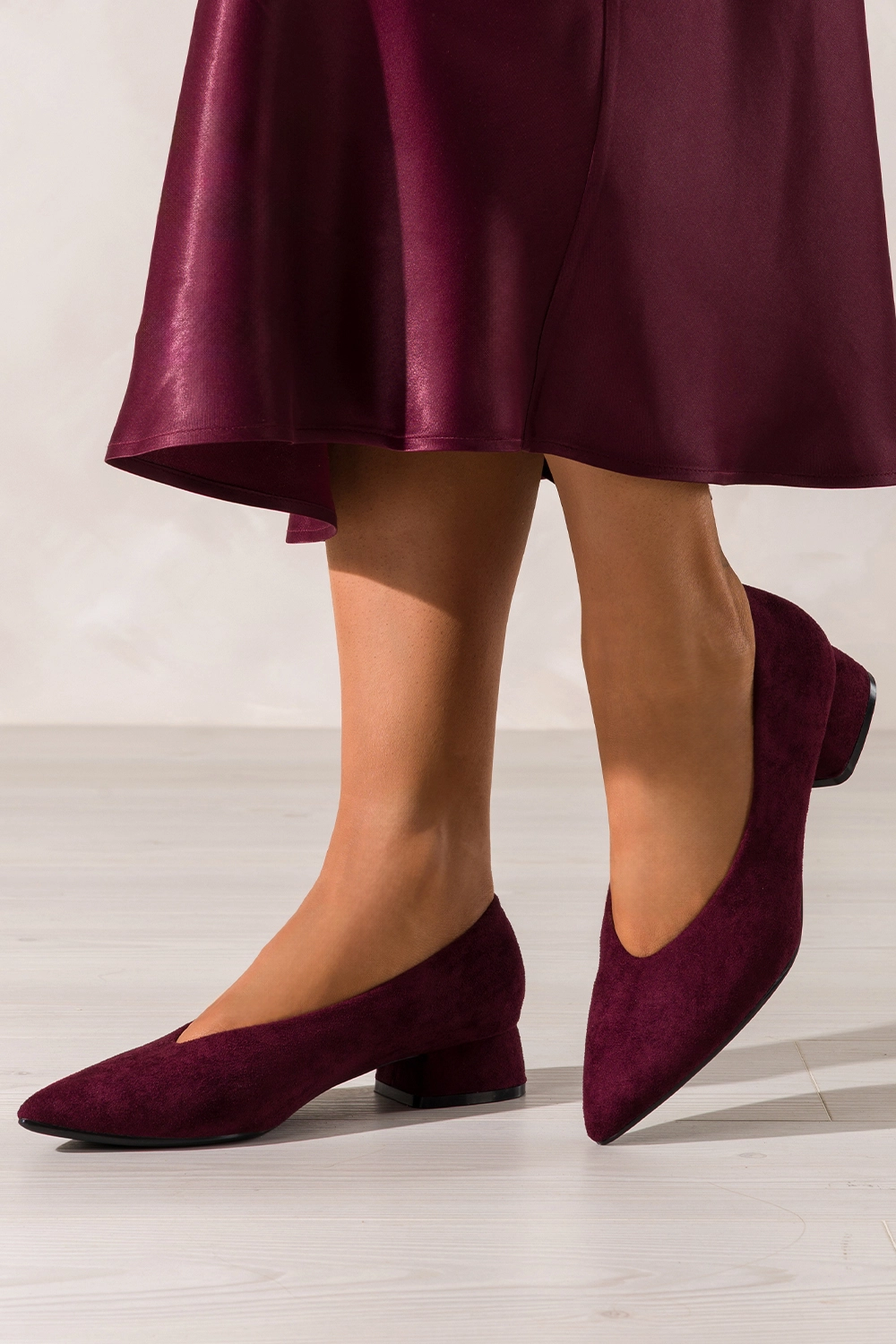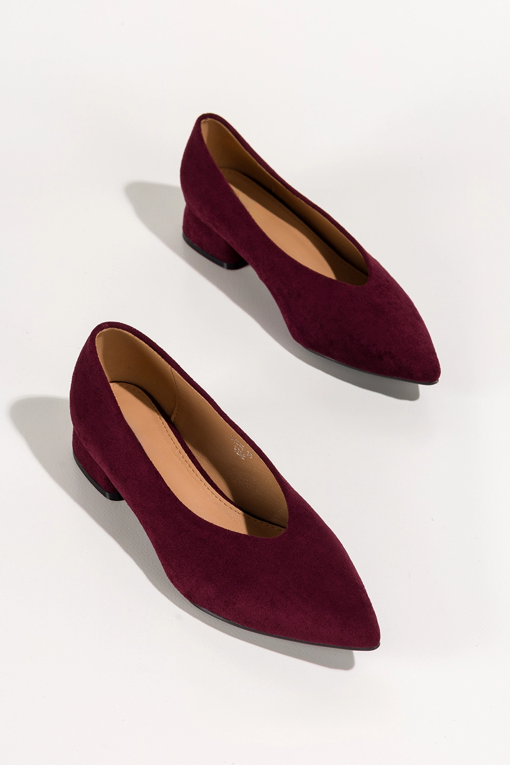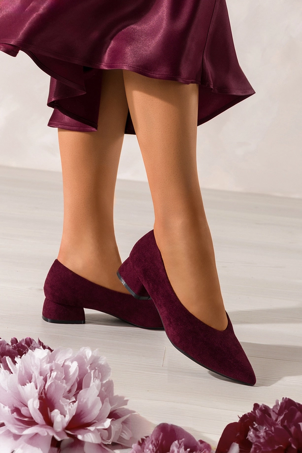 Bordowe baleriny damskie na niskim obcasie wycięcie z przodu Carla model T654P to idealne połączenie klasycznej kobiecej elegancji i nowoczesnego designu. Wykonane z miękkiej, wysokogatunkowej zamszowej skóry ekologicznej, gwarantują nie tylko zniewalający wygląd, ale i pełen komfort noszenia przez cały dzień. Szlachetny odcień bordowy przyciąga spojrzenia i nadaje stylizacji wyjątkowego charakteru. Delikatne wycięcie z przodu podkreśla linię stopy, dodając całości subtelnej zmysłowości. Wsuwana konstrukcja sprawia, że baleriny są nie tylko stylowe, ale również niezwykle praktyczne i wygodne w codziennym użytkowaniu.
