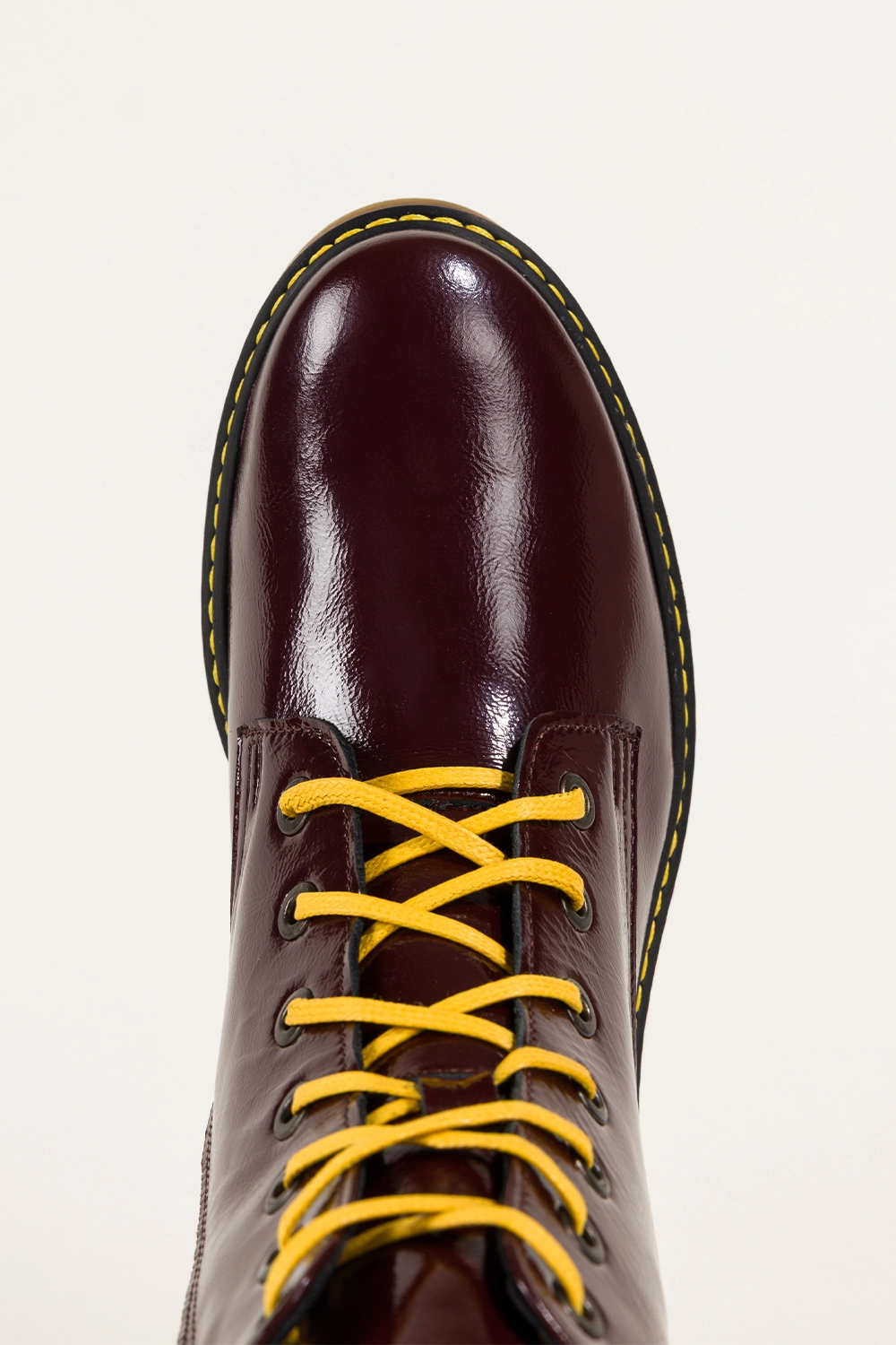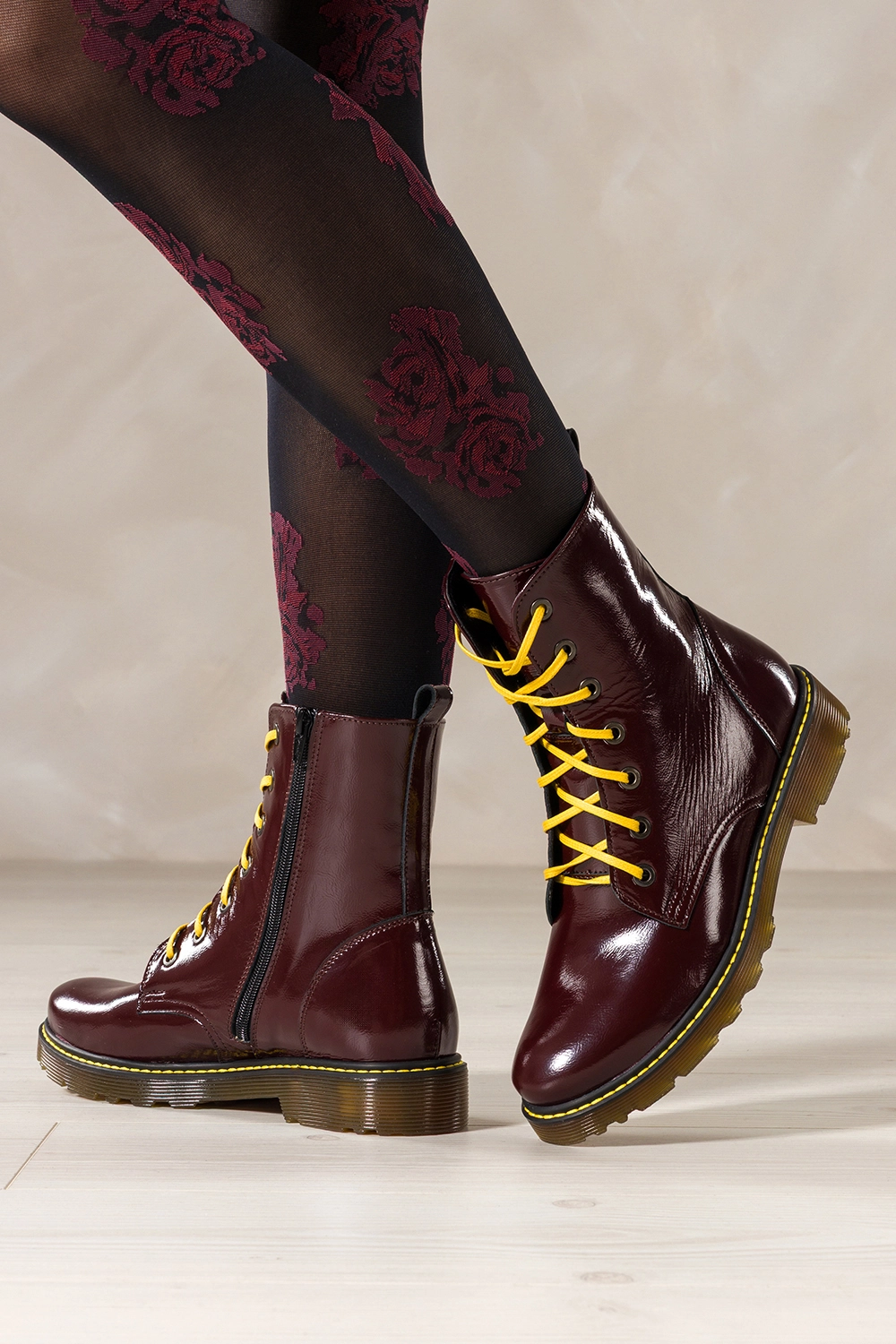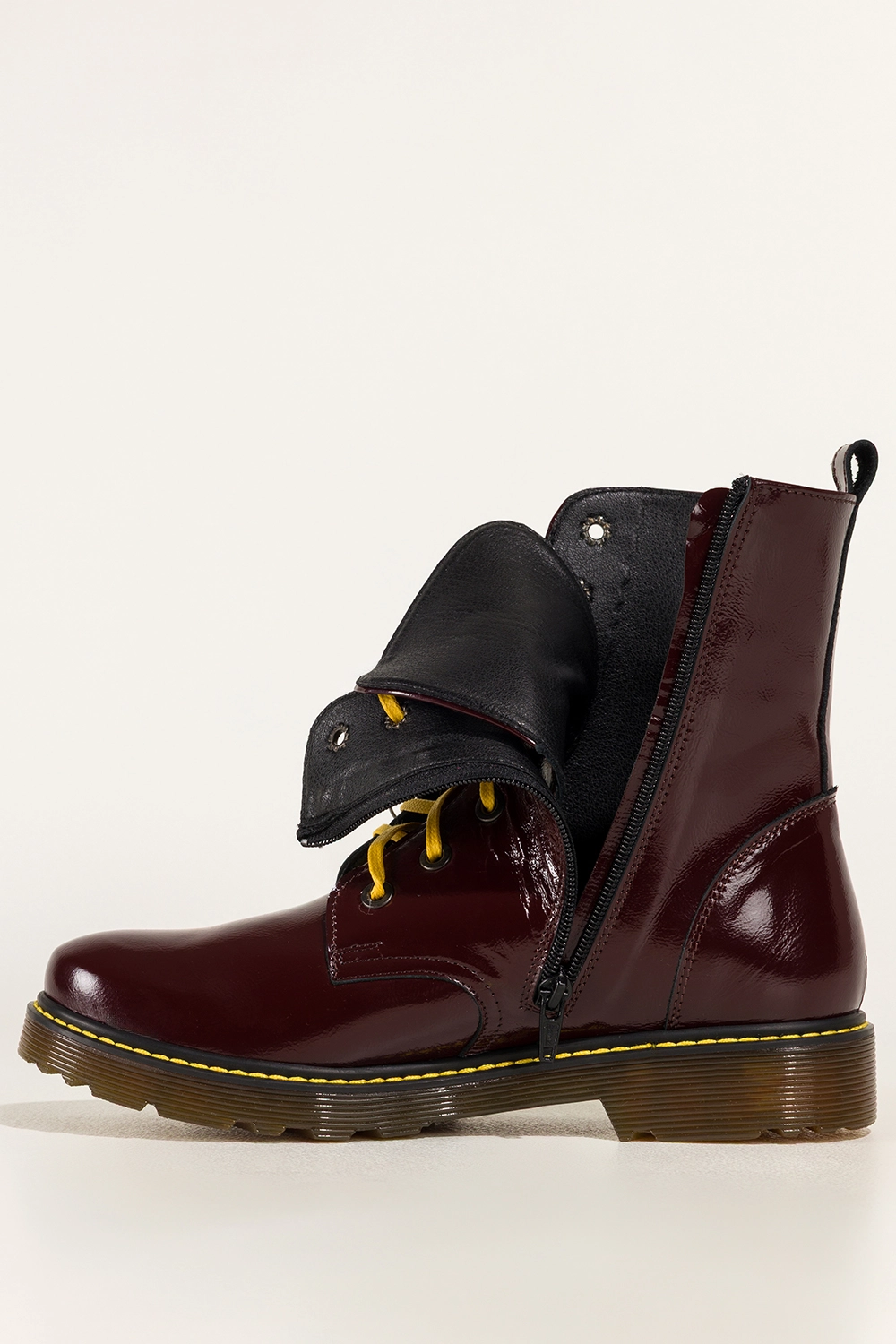 Bordowe botki skórzane damskie lakierowane glany na bieżnikowanej podeszwie z przeszyciami sznurowane PRODUKT POLSKI Casu model 7293-ELTZ, połączenie solidnego rzemiosła z nowoczesnym designem. Wykonane z wysokogatunkowej, lakierowanej skóry naturalnej gwarantują trwałość, odporność na uszkodzenia i niezwykły połysk, który przyciąga wzrok. Ich wnętrze wyściełane miękką, skórzaną wkładką zapewnia komfort noszenia przez cały dzień, a zaokrąglony nosek dodaje im subtelnego, kobiecego charakteru.