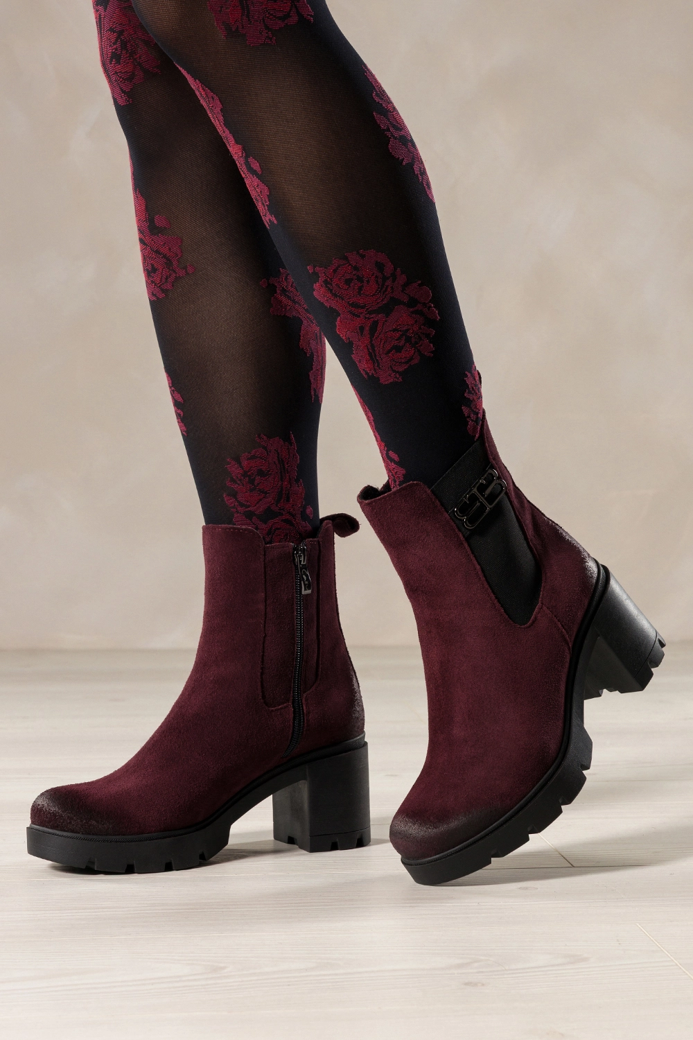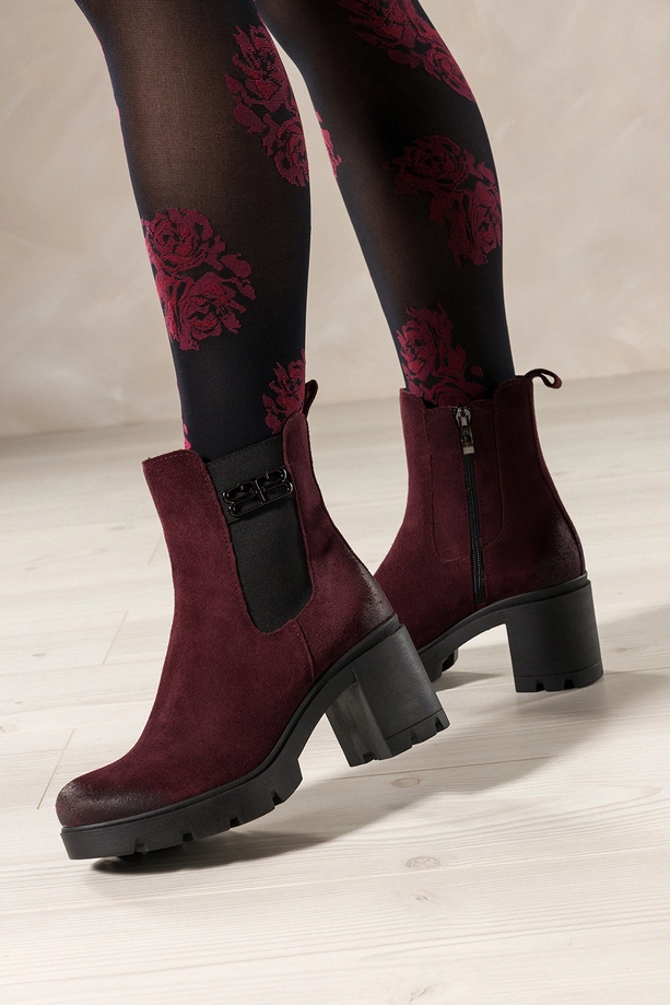 Elegancki bordowy kolor świetnie komponuje się zarówno z klasycznymi, jak i nowoczesnymi stylizacjami. Czarna guma z boku oraz subtelna stalowa ozdoba nadają botkom wyrazistego charakteru, który z łatwością podkreśli Twój indywidualny styl. Idealne do pracy, na spotkania towarzyskie czy wieczorne wyjścia, te botki pasują niemal do każdej okazji i garderoby.