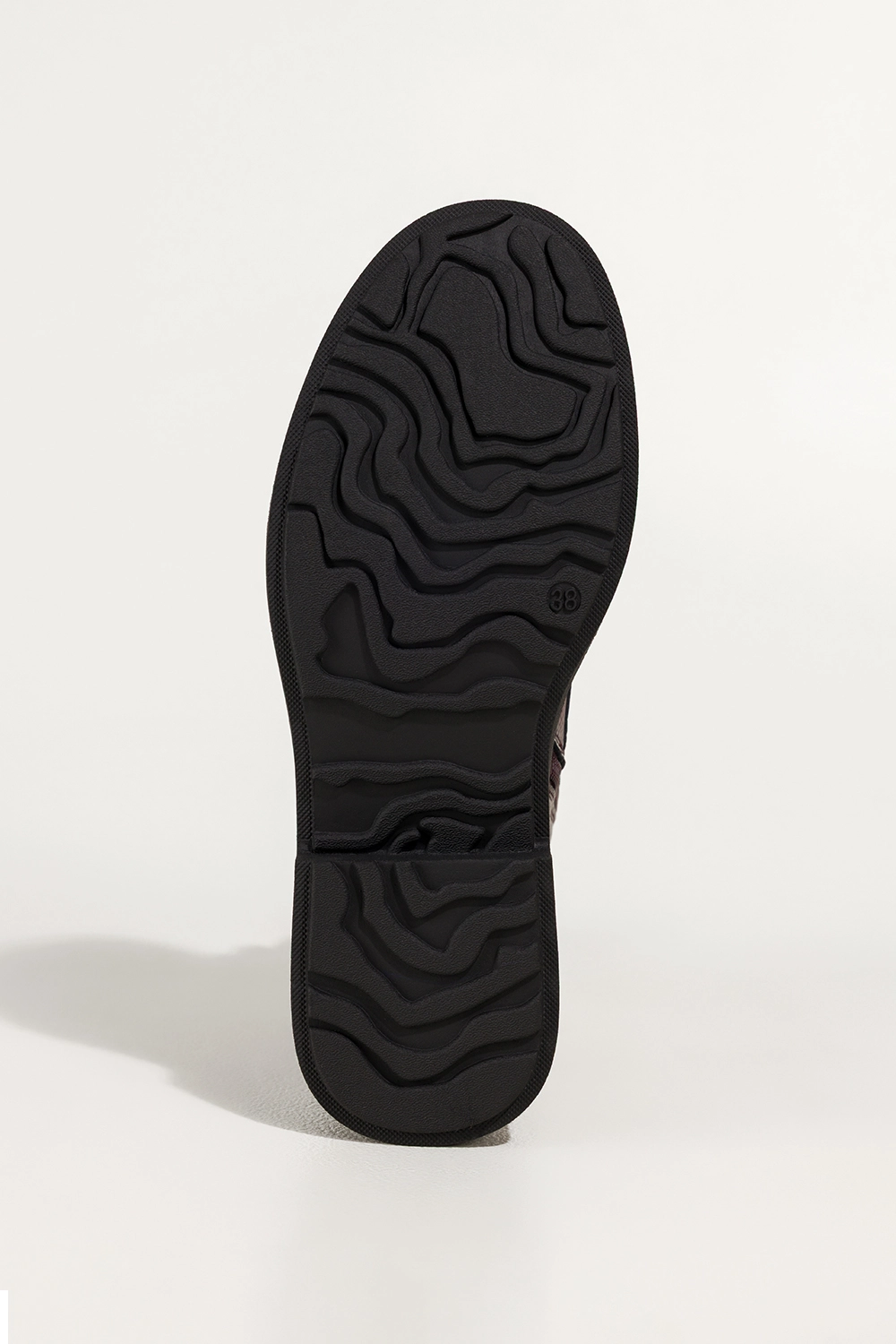 Czarna platforma ze żłobieniami zwiększa przyczepność, co gwarantuje bezpieczeństwo na śliskiej nawierzchni. Dodatkowe sznurowanie pozwala dopasować botki do stopy, a wysoka cholewka stabilizuje kostkę. To idealny wybór dla kobiet, które cenią sobie niezawodność i funkcjonalny styl na co dzień.