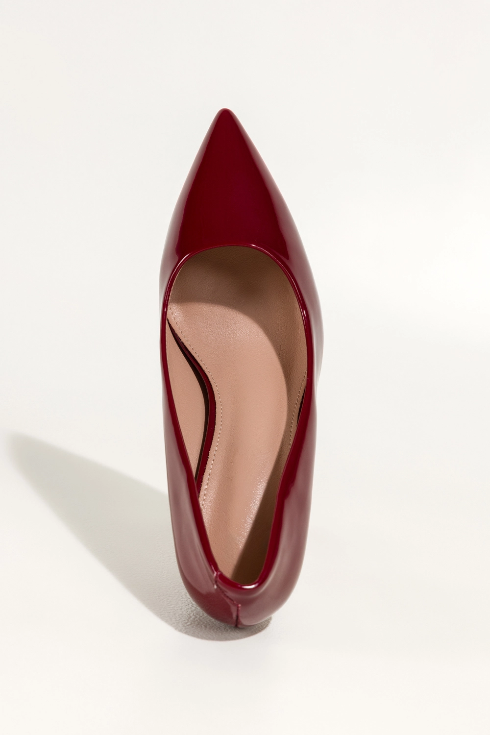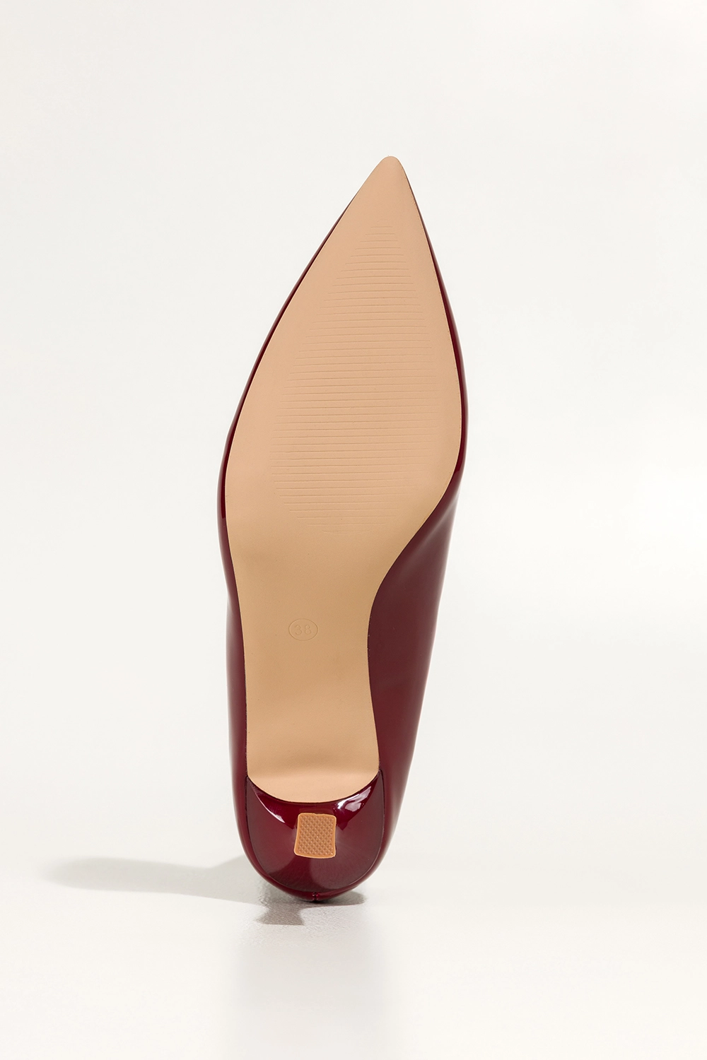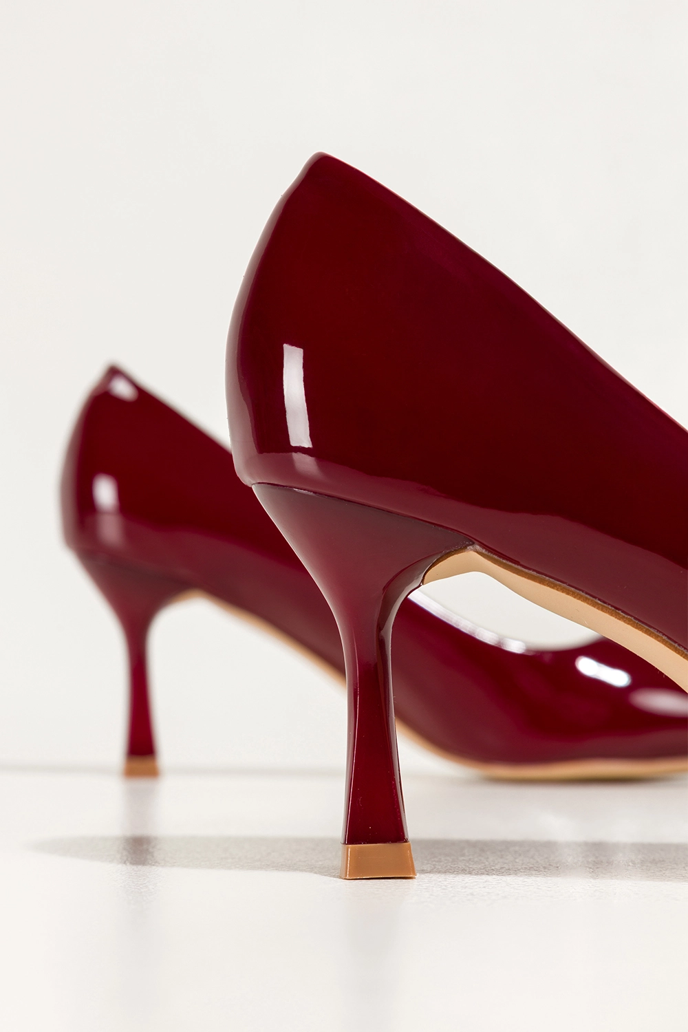 Bordowe czółenka damskie szpilki lakierowane obcas kieliszek Carla T08