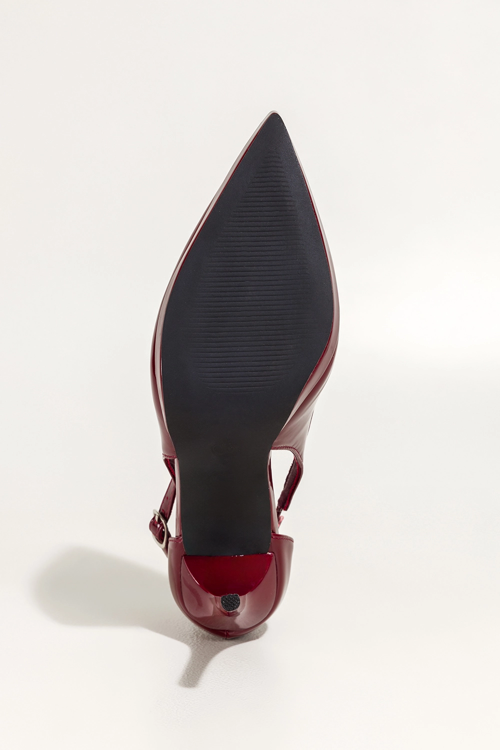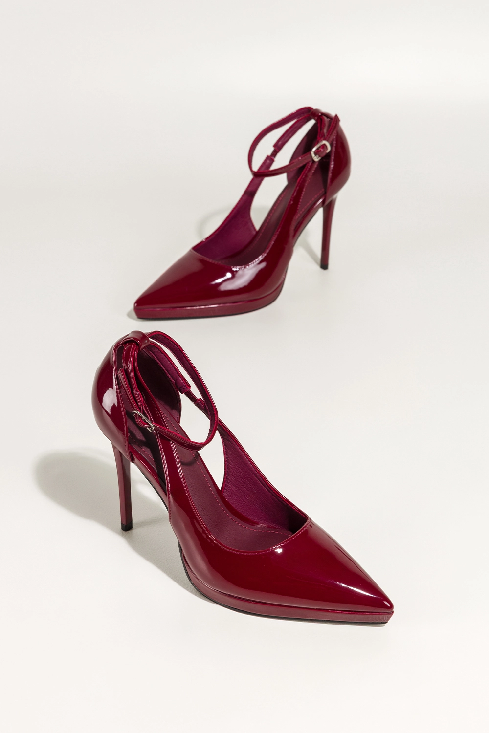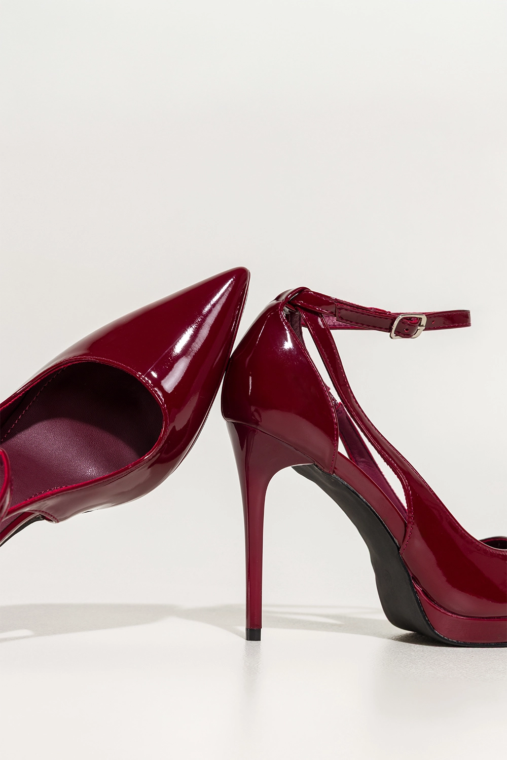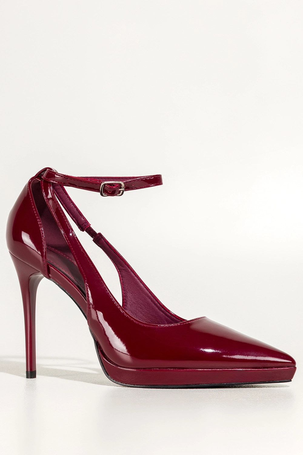 Starannie wykonana konstrukcja z wysokogatunkowej lakierowanej skóry ekologicznej zapewnia trwałość, a miękka wkładka ze skóry ekologicznej dba o komfort podczas całego dnia. Delikatna platforma stabilizuje krok, a pasek wokół kostki zapinany na subtelną srebrną klamerkę gwarantuje idealne dopasowanie i poczucie pewności przy każdym ruchu.