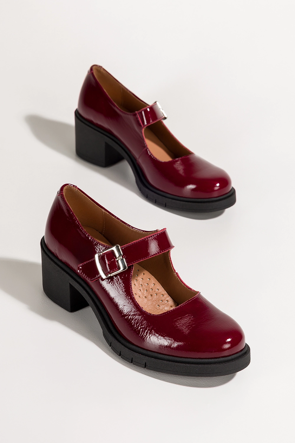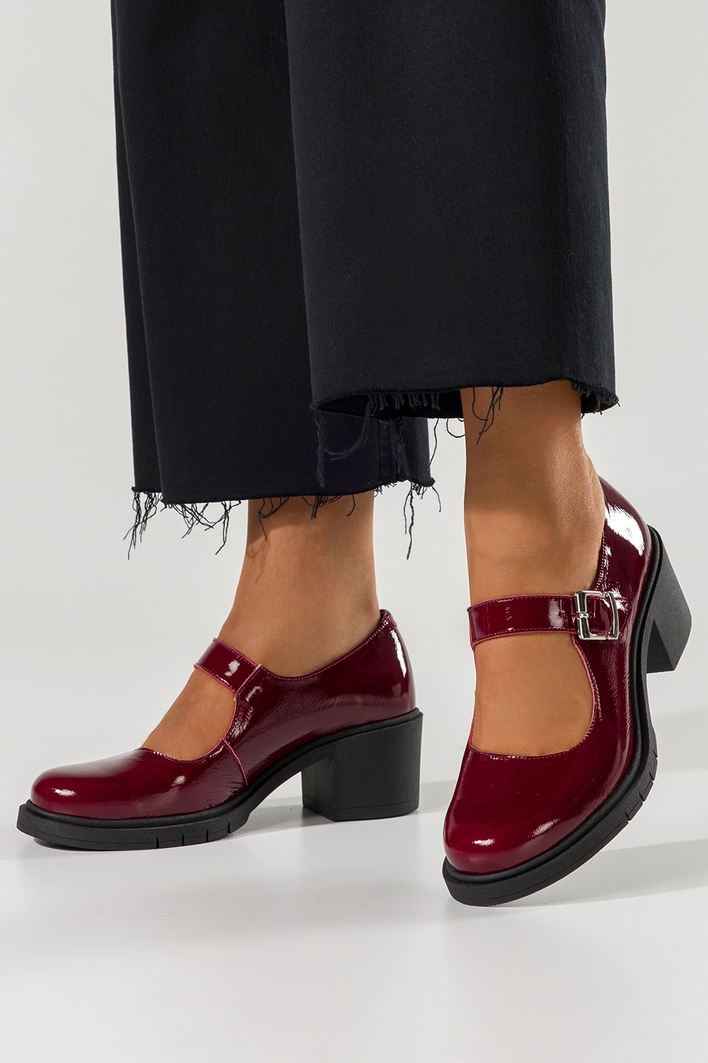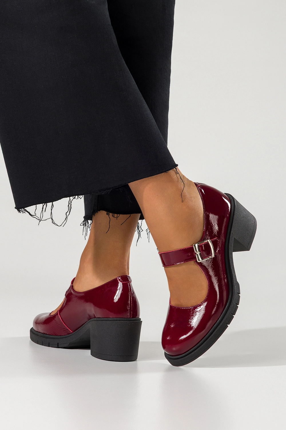 Bordowe czółenka skórzane damskie lakierowane Mary Jane z paskiem szeroki obcas klocek PRODUKT POLSKI Casu model 609 to kwintesencja kobiecego stylu, elegancji i wygody w jednym. Wykonane z najwyższej jakości skóry lakierowanej, zachwycają nie tylko niepowtarzalnym wyglądem, ale również solidnością i trwałością, które gwarantują długotrwałe użytkowanie bez kompromisów. Ten wyjątkowy model łączy w sobie klasyczną estetykę lat 50. z nowoczesnym podejściem do komfortu, tworząc but idealny zarówno na co dzień, jak i na specjalne okazje. Głęboki, intensywny bordowy kolor przyciąga wzrok i dodaje stylizacji charakteru, a błyszczące wykończenie nadaje całości luksusowego sznytu. To czółenka dla kobiet, które chcą czuć się pewnie, stylowo i wygodnie niezależnie od okoliczności.