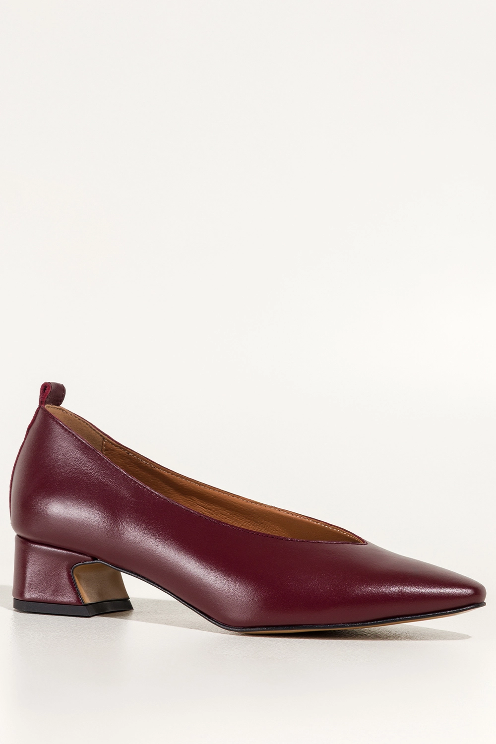 Bordowe czółenka skórzane damskie na niskim klocku wycięcie w cholewce PRODUKT POLSKI Casu 7235-771