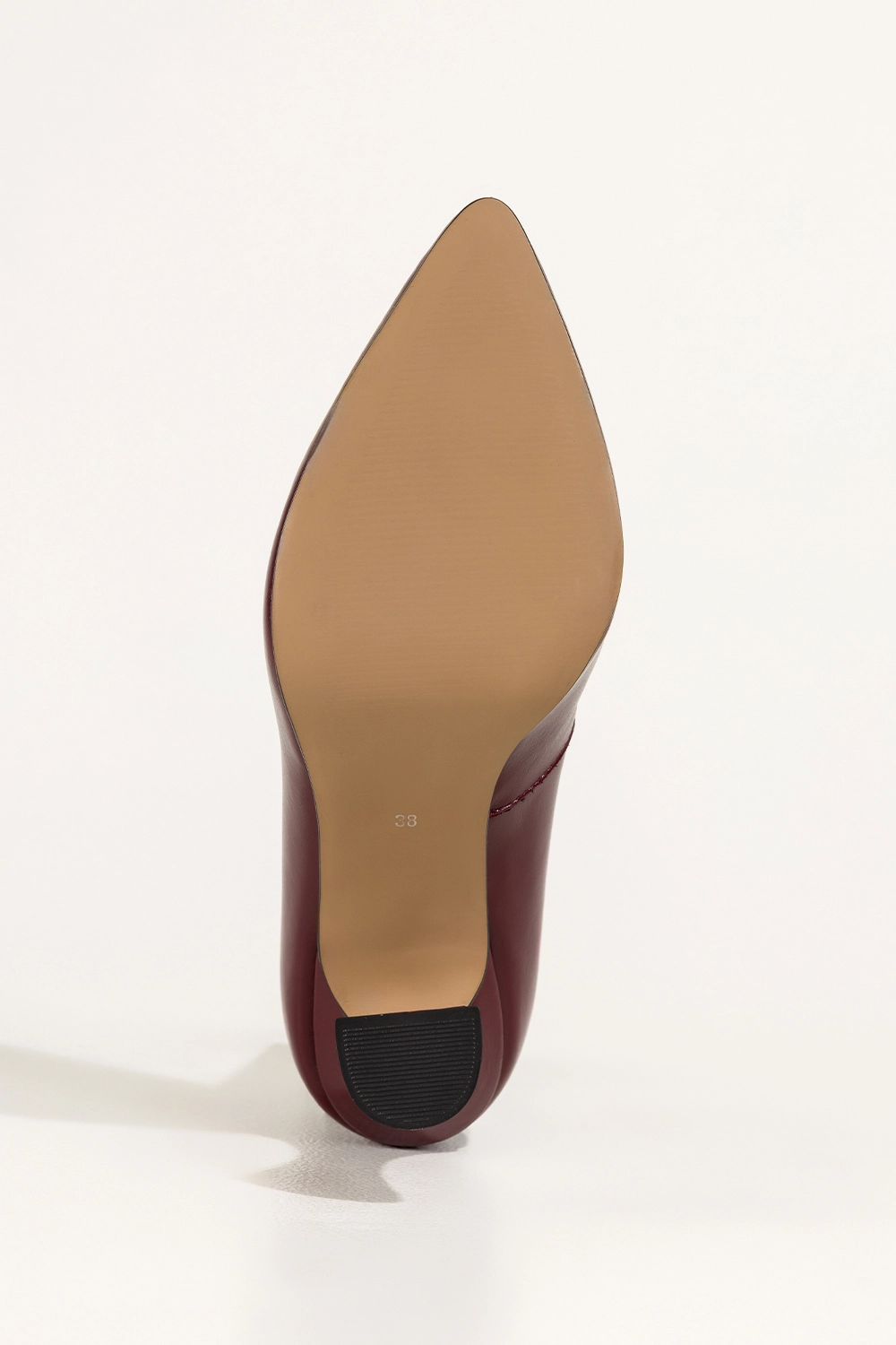 Głęboki, bordowy kolor przyciąga spojrzenia i subtelnie podkreśla kobiecą siłę. Szpiczasty nosek wysmukla stopę i wydłuża nogi, tworząc efektowną sylwetkę niezależnie od okazji. Wsuwana konstrukcja sprawia, że czółenka są łatwe do założenia i idealnie dopasowują się do stopy. To buty, które doskonale komponują się zarówno z elegancką sukienką, jak i formalnym garniturem. Stanowią idealny wybór na wesele, do biura, jak i na wieczorne wyjścia. Uniwersalność tego modelu pozwala na tworzenie niezliczonych stylizacji bez kompromisów.