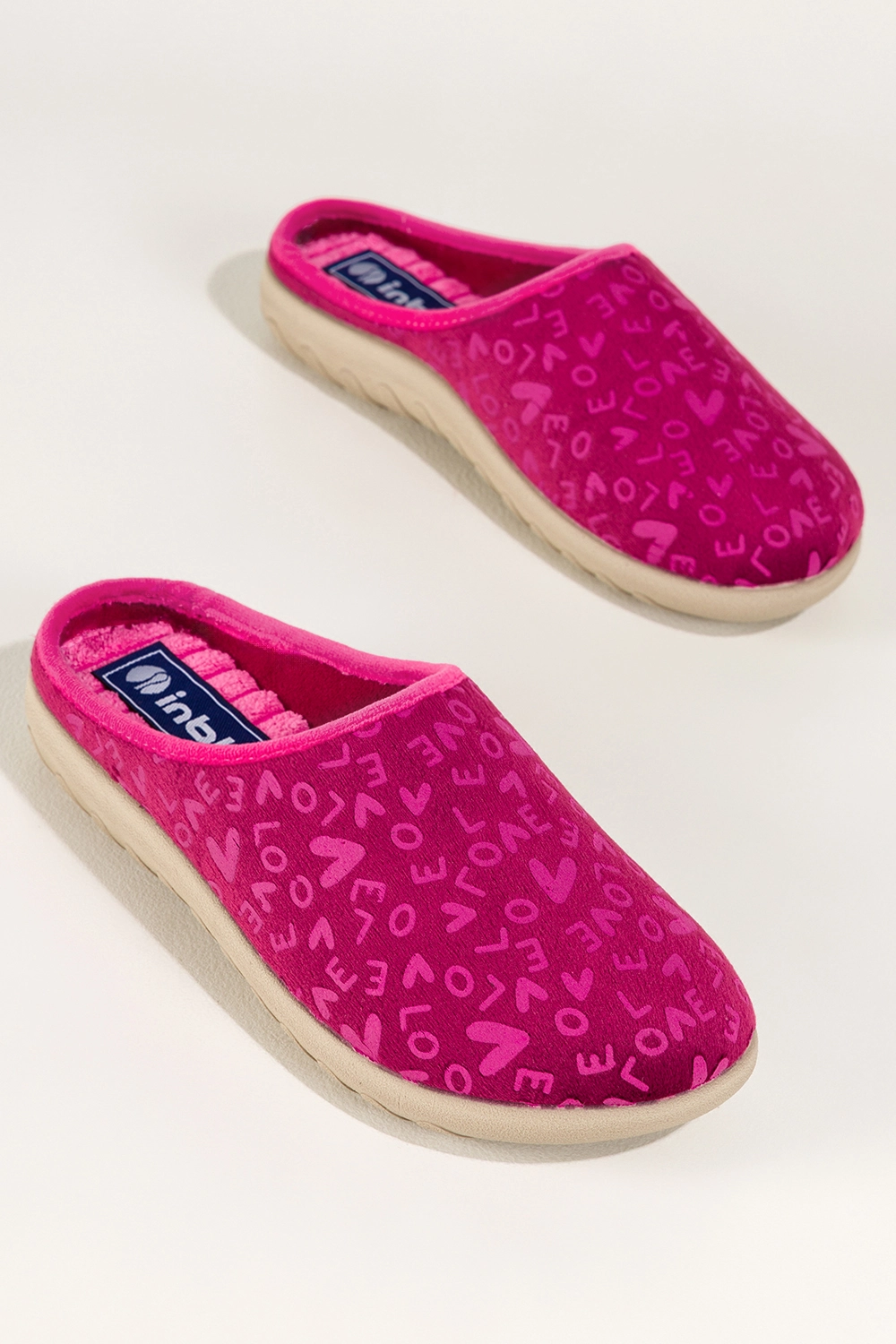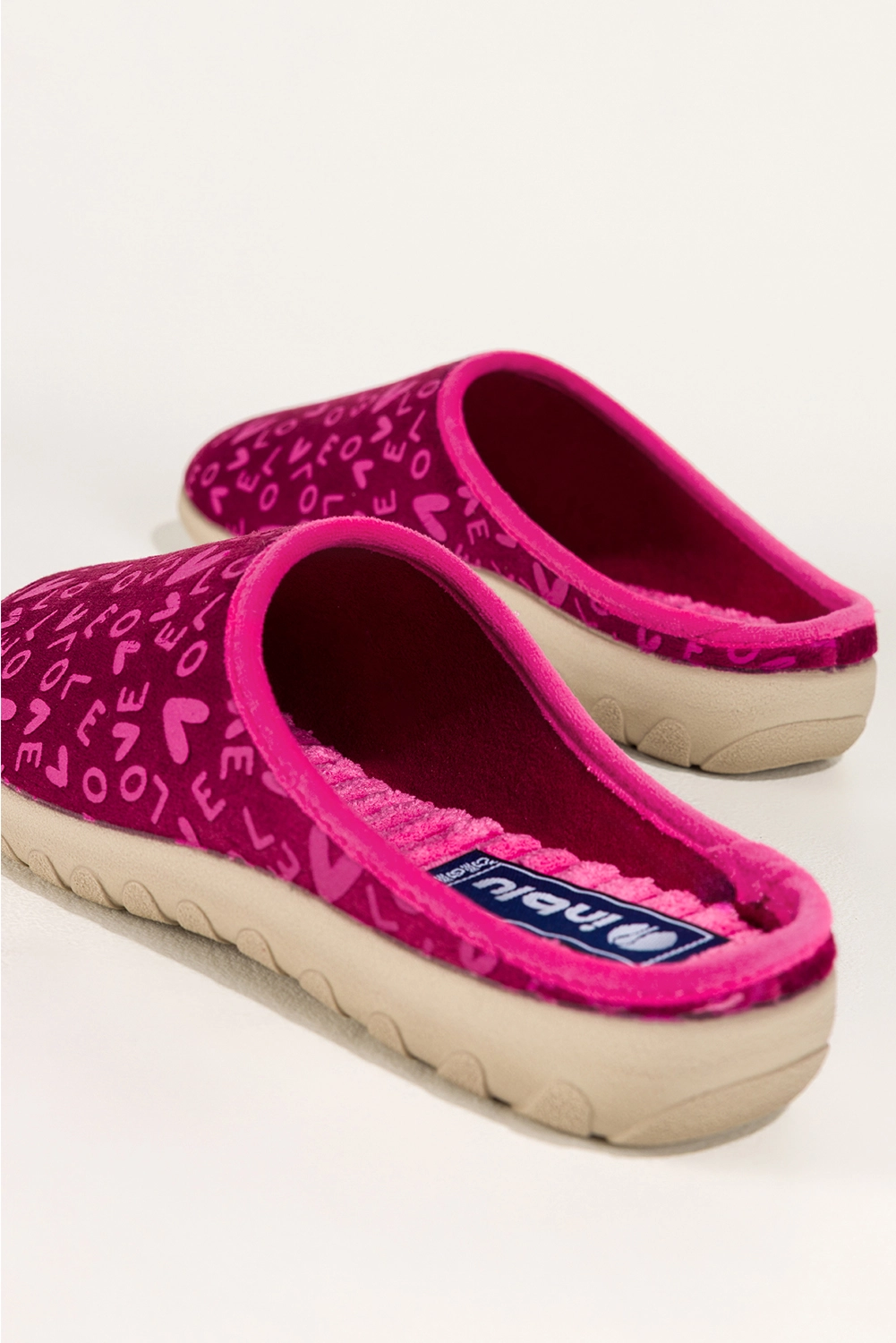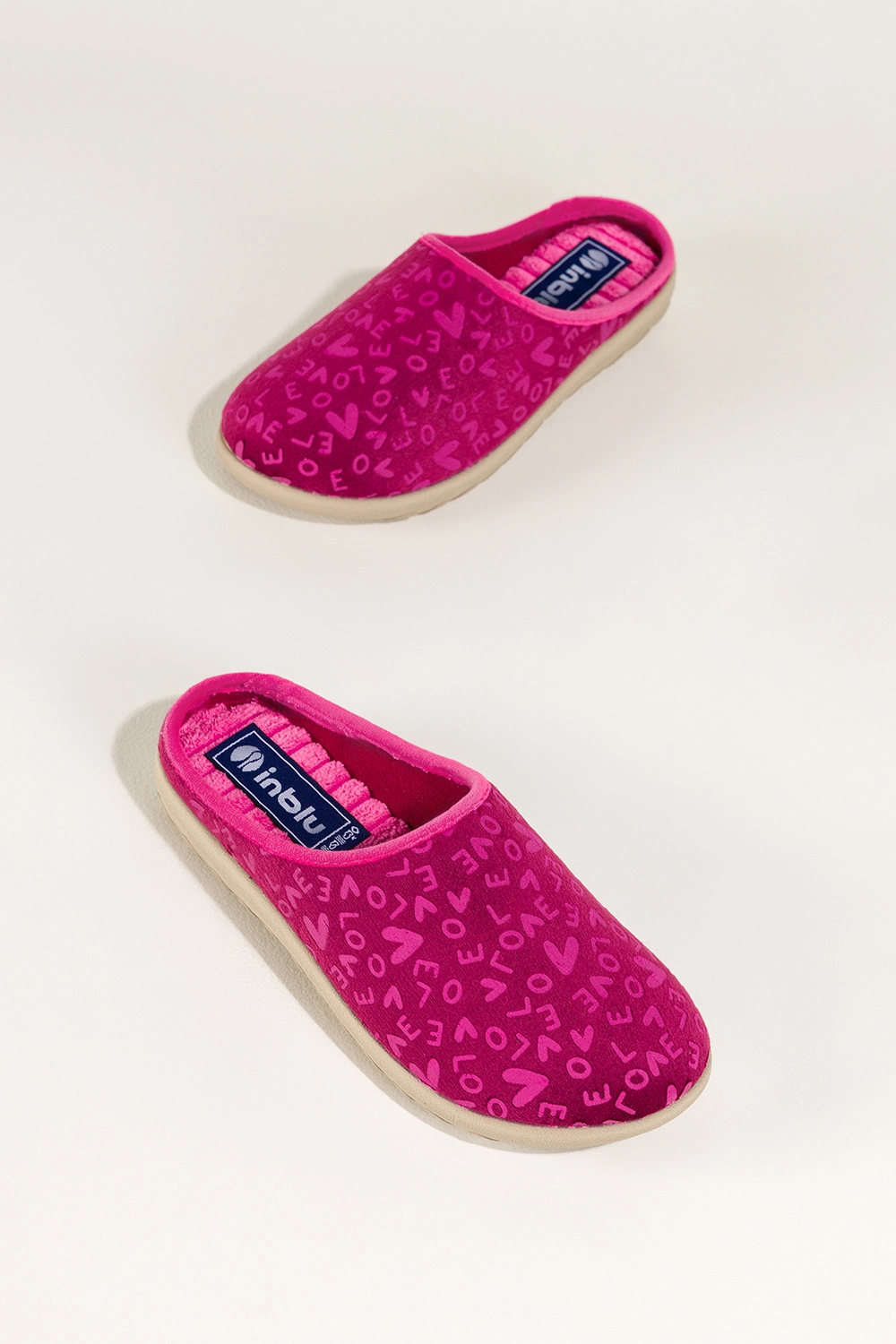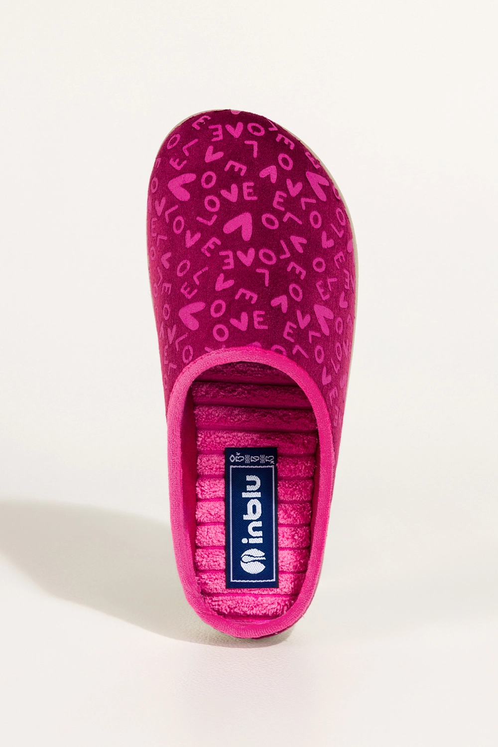 Bordowe kapcie damskie Inblu obuwie domowe ozdobione napisami Love VG999967