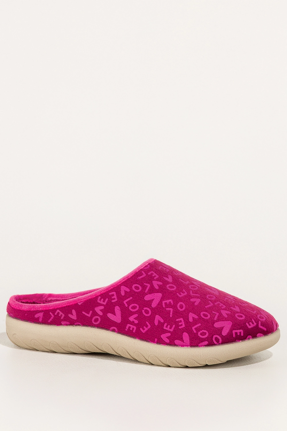 Zaokrąglony nosek, wsuwana konstrukcja i lekka, płaska podeszwa czynią je idealnymi do codziennego użytkowania. Bordowy kolor w połączeniu z uroczymi napisami "Love" na cholewce dodaje im ciepła i wyjątkowego charakteru, dzięki czemu świetnie wpisują się w domowe stylizacje, ale też mogą stać się efektownym akcentem podczas przyjęć w kameralnym gronie.