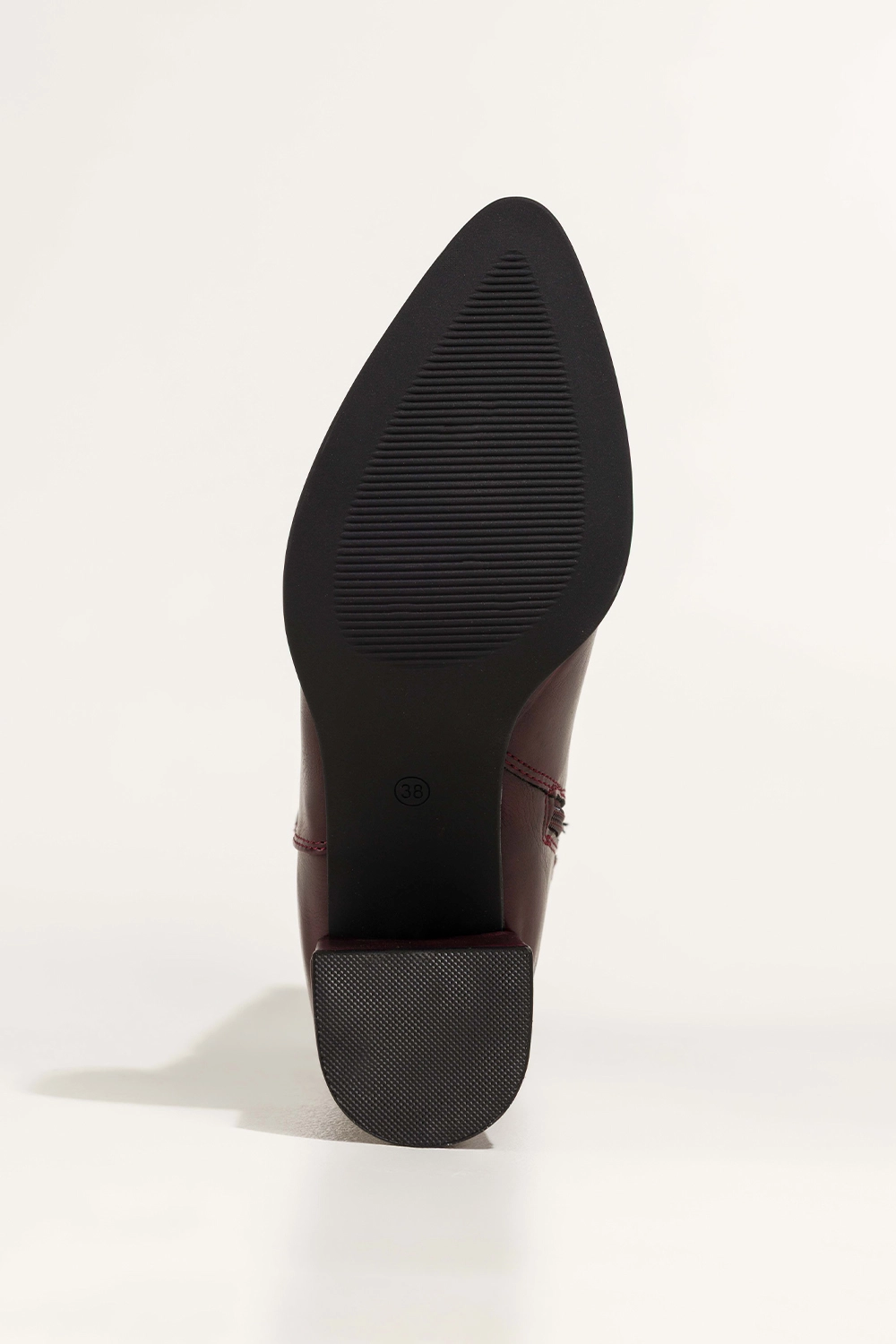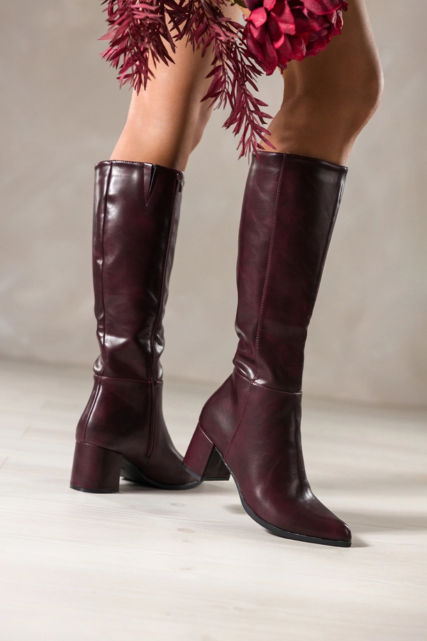 Głęboki, bordowy kolor dodaje szyku każdej stylizacji, od codziennych zestawów po wieczorne wyjścia. Szpiczasty nosek wydłuża optycznie nogę, a obcas typu słupek, pokryty skórą ekologiczną, zapewnia stabilność oraz wygodę przez cały dzień. Wszyta w cholewce elastyczna guma to funkcjonalne rozwiązanie dopasowujące się do różnych kształtów łydki, co podnosi komfort noszenia i estetykę.