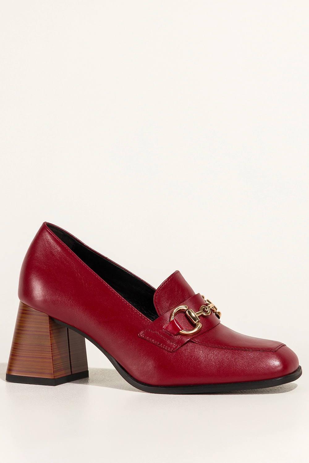 Bordowe mokasyny skórzane damskie na ozdobnym klocku złota sprzączka PRODUKT POLSKI Casu 7317-768
