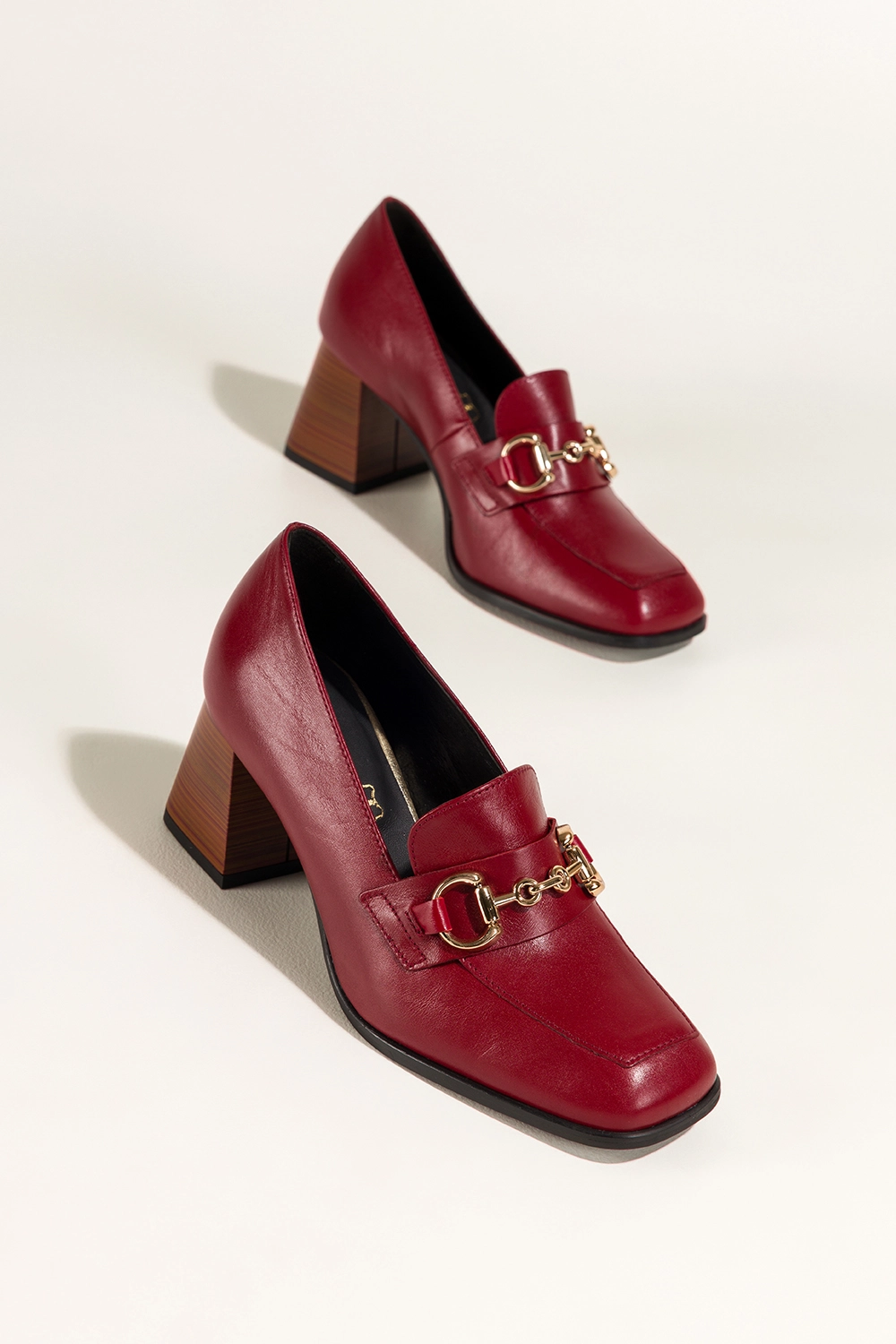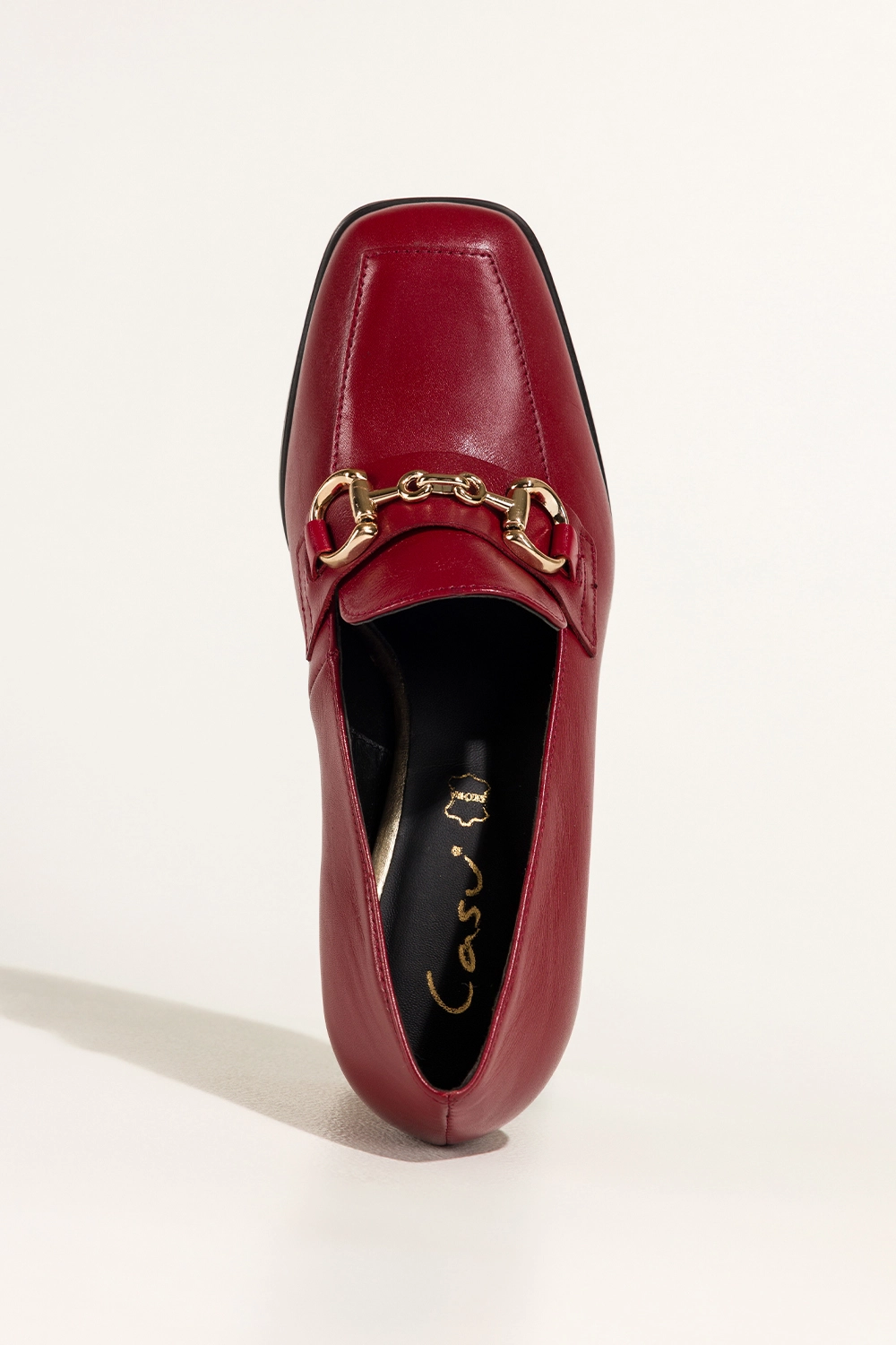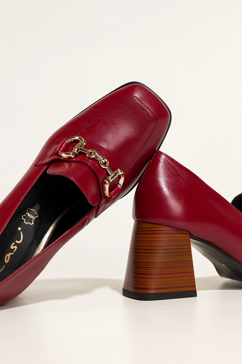 Bordowe mokasyny skórzane damskie na ozdobnym klocku złota sprzączka PRODUKT POLSKI Casu model 7317-768, to synonim elegancji i staranności. Wykonane z wysokogatunkowej, naturalnej skóry, zapewniają trwałość i komfort. Skórzana wkładka gwarantuje wygodę noszenia nawet przez wiele godzin, dopasowując się do kształtu stopy. Kwadratowy nosek i staranne wykończenie dodają im klasy, czyniąc z nich obuwie idealne dla kobiet ceniących luksusowy minimalizm.