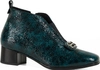 Zielone botki skórzane damskie lakierowane wzór wężowy obcas klocek elastyczna guma na przodzie srebrna ozdoba PRODUKT POLSKI Casu 378-L