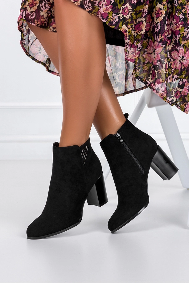 Czarne botki damskie marki Sergio Leone model BT352 zostały wykonane z wysokogatunkowej, zamszowej skóry ekologicznej co gwarantuje doskonałą jakość. Szukasz idealnych botków, które dopełnią Twój jesienny lub zimowy look? Oto propozycja, która z pewnością przyciągnie Twoją uwagę. Łączą one w sobie klasykę z nowoczesnym designem. Wyróżniają się przede wszystkim unikatowymi detalami, które z pewnością przykuwają wzrok. Ich elegancki wygląd podkreśla okrągły czubek – to klasyka, która nigdy nie wychodzi z mody. Dzięki temu botki świetnie sprawdzą się zarówno w codziennych, jak i bardziej oficjalnych stylizacjach. Ponadto, zapięcie na zamek gwarantuje łatwe zakładanie i zdejmowanie obuwia, a także doskonałe dopasowanie do nogi. Drobne nity umiejscowione po zewnętrznej stronie nadają obuwiu charakteru, jednocześnie nie dominując nad całokształtem. Są subtelne, ale zdecydowanie dodają botkom pikanterii. Komfort noszenia to dla nas priorytet. Dlatego nasze botki są lekko ocieplone futerkiem, co sprawi, że nawet w chłodniejsze dni Twoje stopy będą ciepłe. Obcas w kształcie słupka dodaje pewność kroku i elegancji, jednocześnie zapewniając stabilność podczas chodzenia. Jeśli poszukujesz czarnych botków, które są nie tylko stylowe, ale również funkcjonalne i wygodne, nasza propozycja z Casu.pl będzie strzałem w dziesiątkę. Eleganckie, z charakterem i dbałością o każdy detal – taki jest nasz wybór dla Ciebie. Zapraszamy do zakupów!