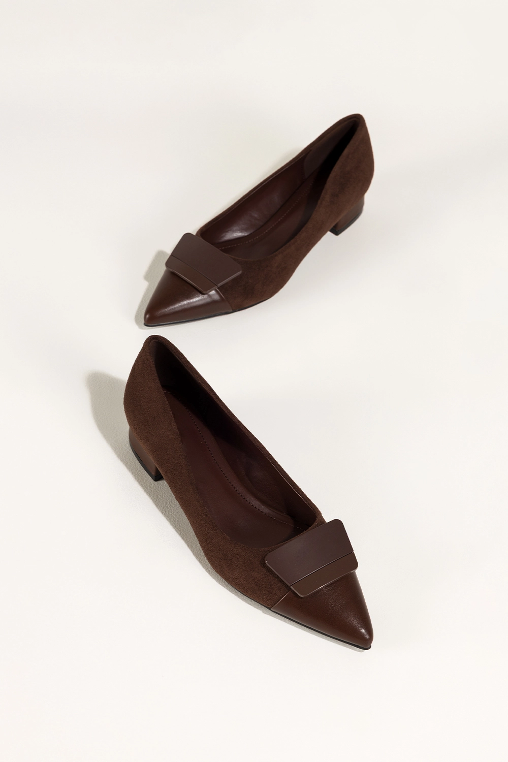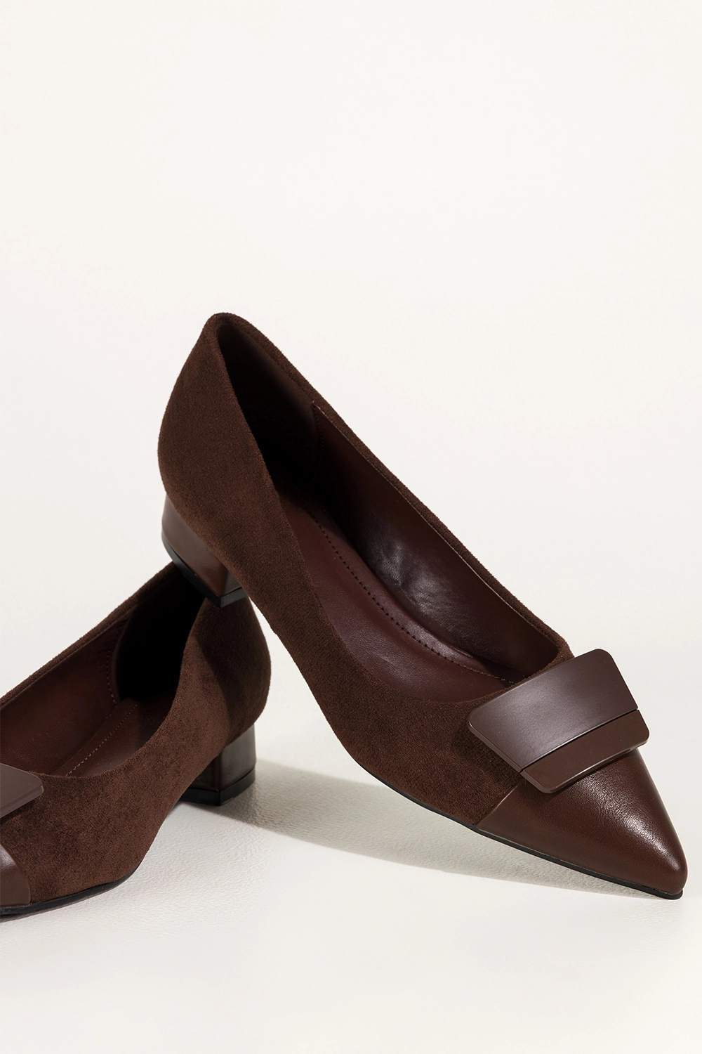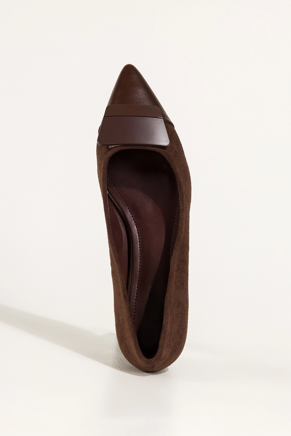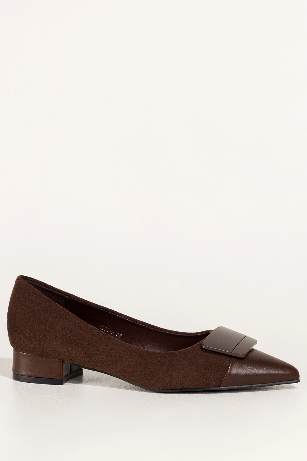 Brązowe baleriny damskie z brązową ozdobą na niskim obcasie Carla model F4994 doskonale sprawdzą się na co dzień i podczas wyjątkowych okazji. Wykonane z miękkiego, wysokogatunkowego zamszu ekologicznego oferują niezwykłą trwałość oraz luksusowy wygląd. Wkładka z ekologicznej skóry gwarantuje wygodę nawet przy długim noszeniu. Model wsuwany ułatwia szybkie zakładanie, zapewniając jednocześnie idealne dopasowanie do stopy.
