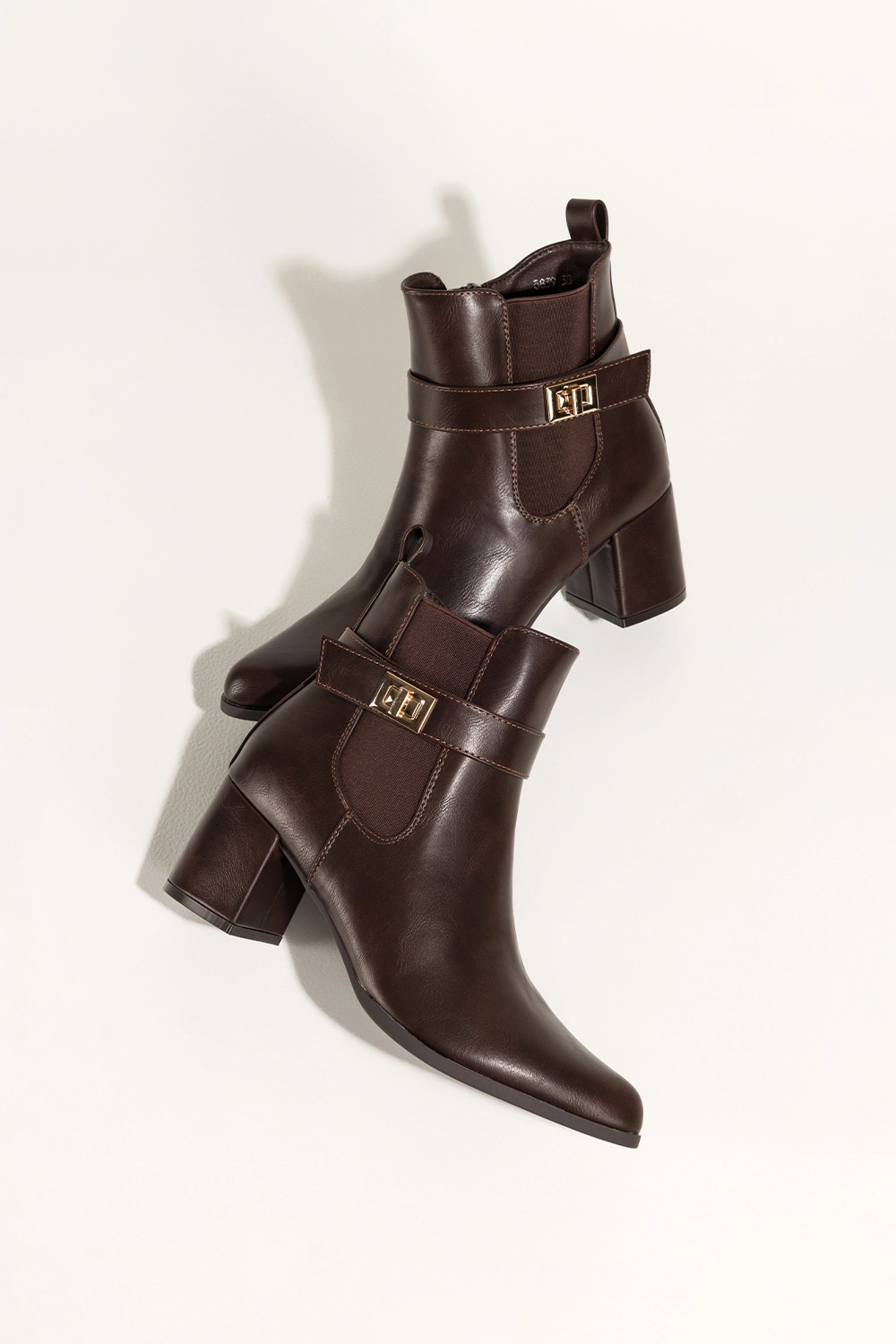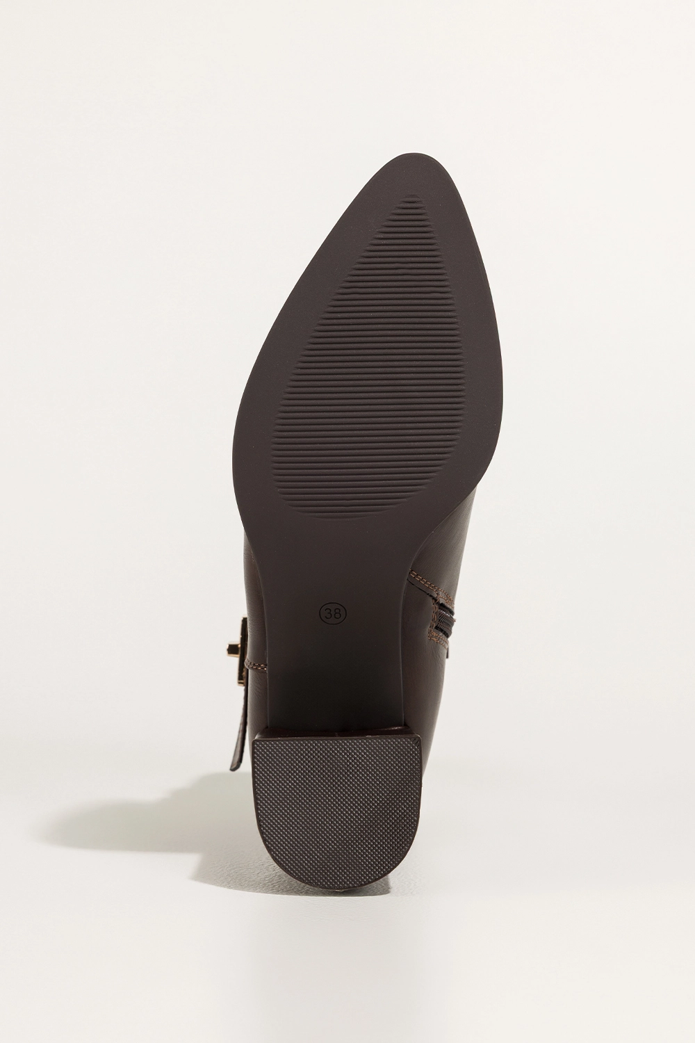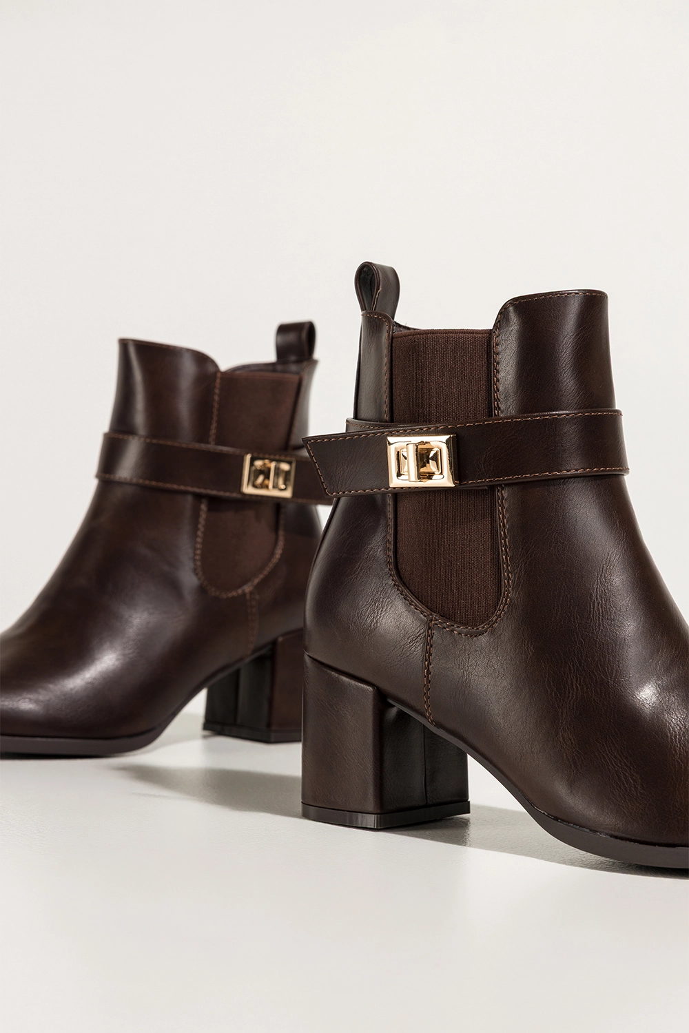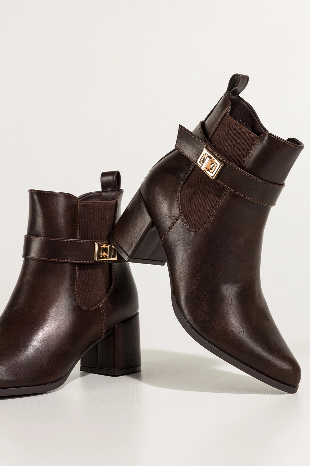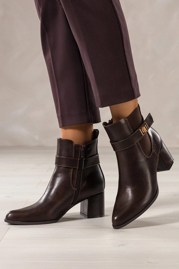 Cechy wyróżniające i unikalne detale – stylowy akcent w Twojej garderobie. Botki przyciągają wzrok dzięki drobiazgowo dopracowanym elementom. Brązowa guma w cholewce nie tylko ułatwia dopasowanie obuwia do nogi, ale też stanowi ciekawy akcent stylistyczny. Pasek ze złotą ozdobą subtelnie podkreśla elegancki charakter botków, a ich ogólna linia zachwyca harmonią proporcji i smukłością kształtu. Dzięki zastosowaniu ekologicznej skóry o wysokiej odporności na ścieranie, botki pozostają w świetnym stanie przez długi czas. Co więcej, materiał ten jest łatwy w pielęgnacji i przyjazny dla środowiska. Każdy detal tego modelu świadczy o dbałości o kobiece potrzeby – zarówno te estetyczne, jak i praktyczne.